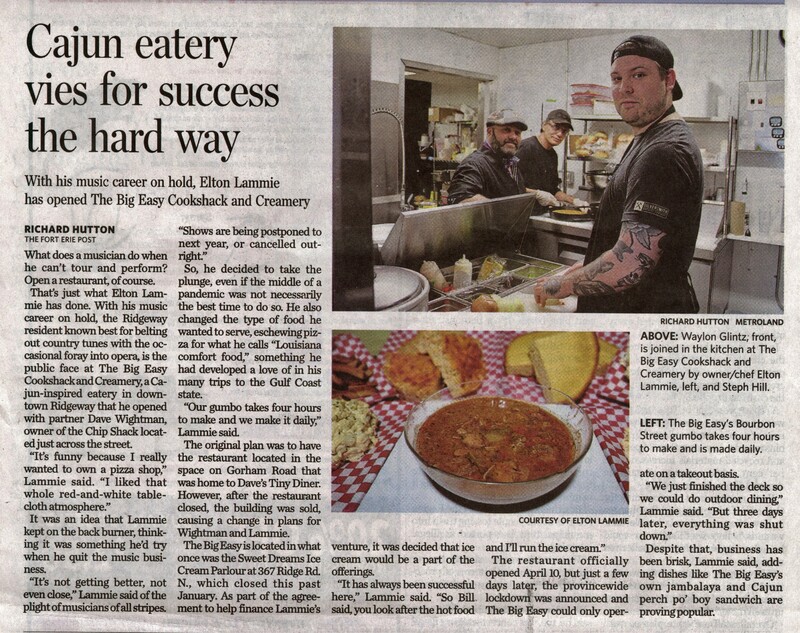 - Cajun eatery vies for success the hard way : With his music career on hold, Elton Lammie has opened The Big Easy Cookshack and Creamery