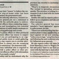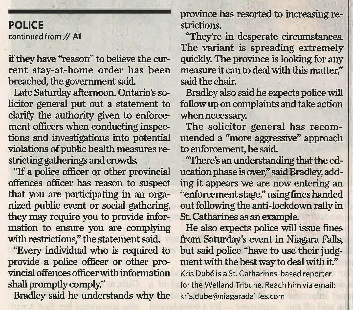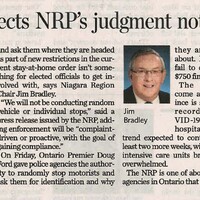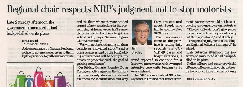 - Bradley, Jim / COVID-19 pandemic / Niagara Regional Police / Niagara Region Chair / stay-at-home order