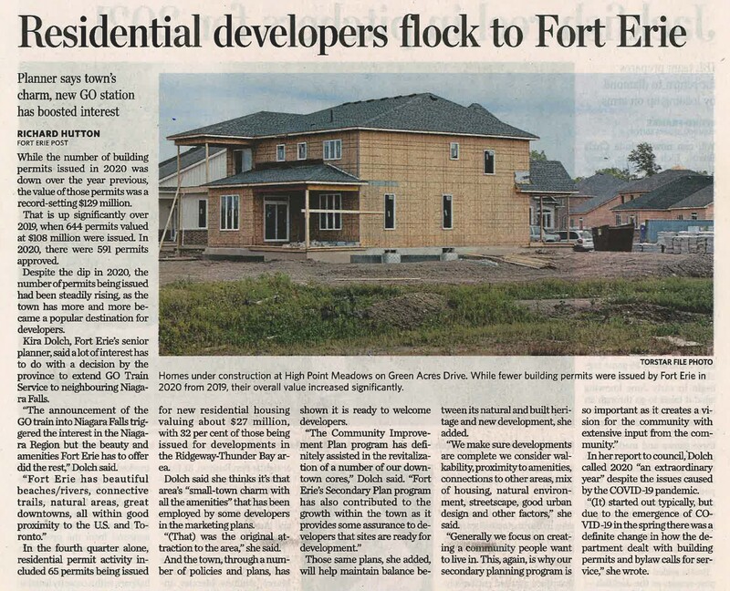 Residential developers flock to Fort Erie : Planner says town's charm, GO station has boosted interest