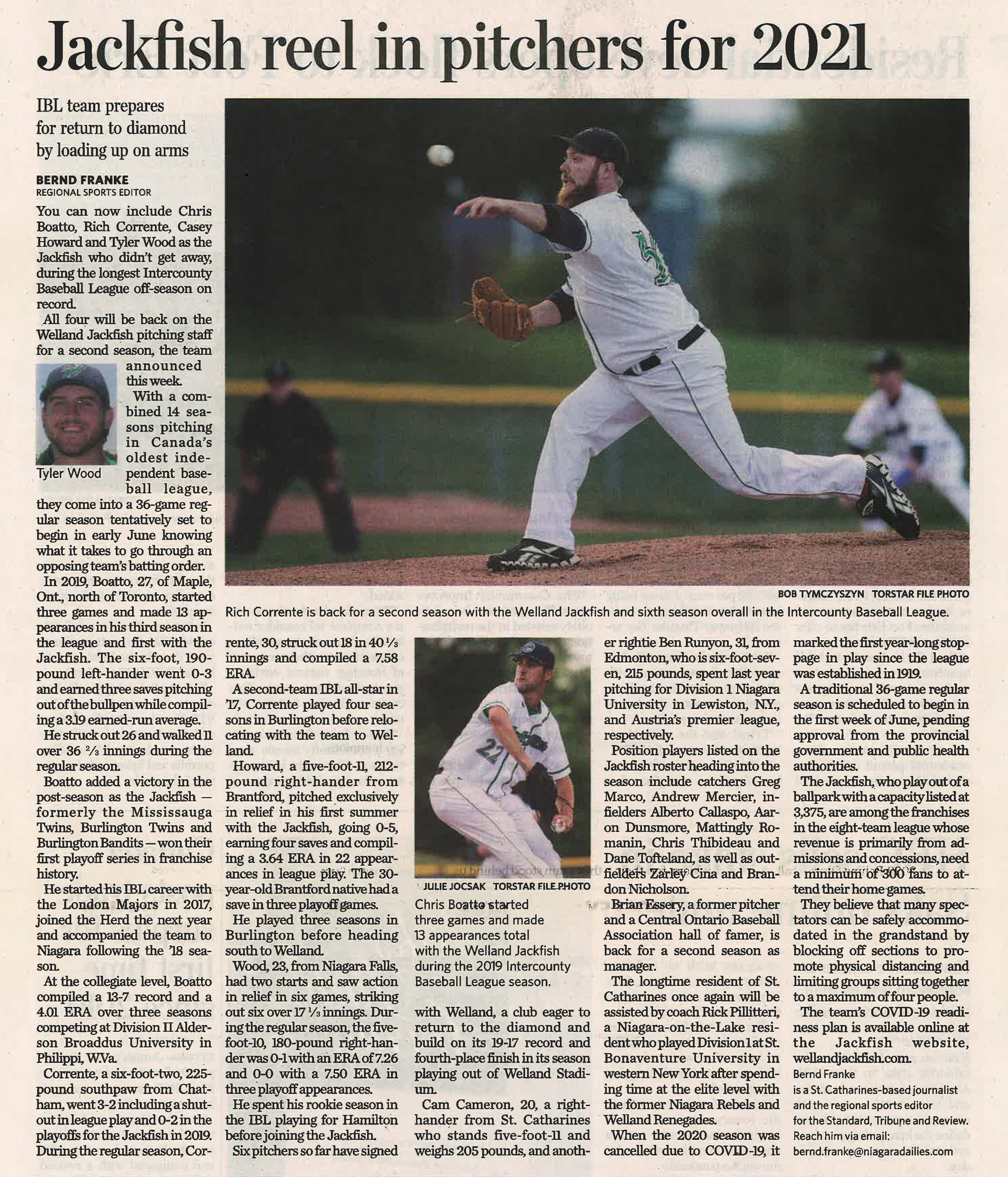 - Jackfish reel in pitchers for 2021 : IBL team prepares for return to diamond by loading up on arms