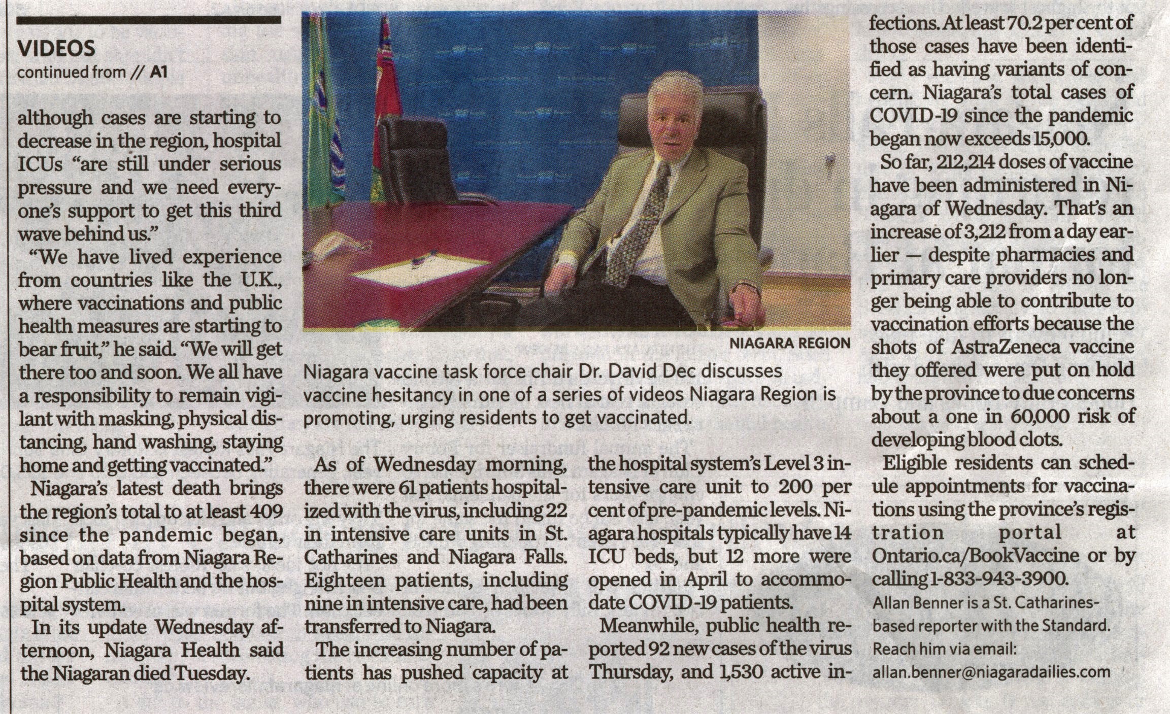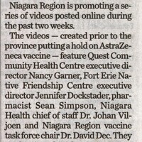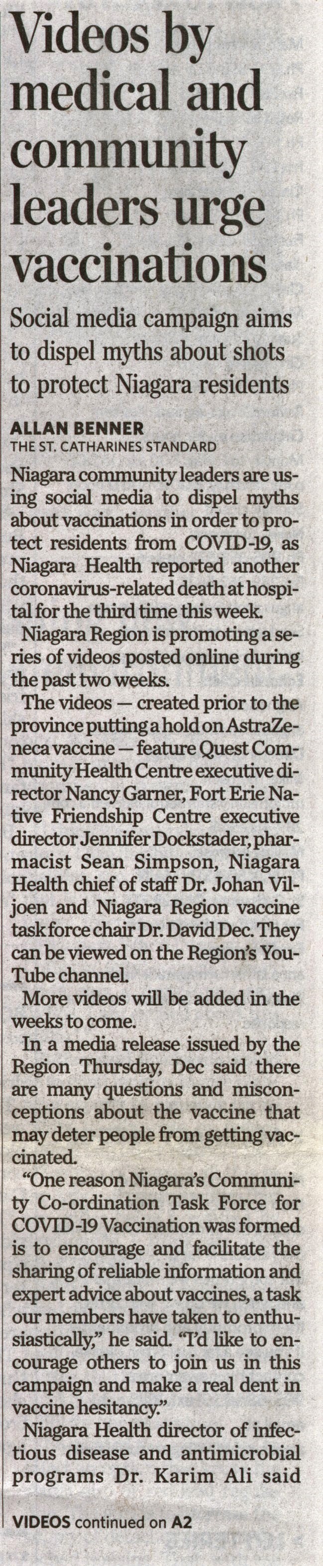 - Videos by medical and community leaders urge vaccinations : Social media campaign aims to dispel myths about shots to protect Niagara residents