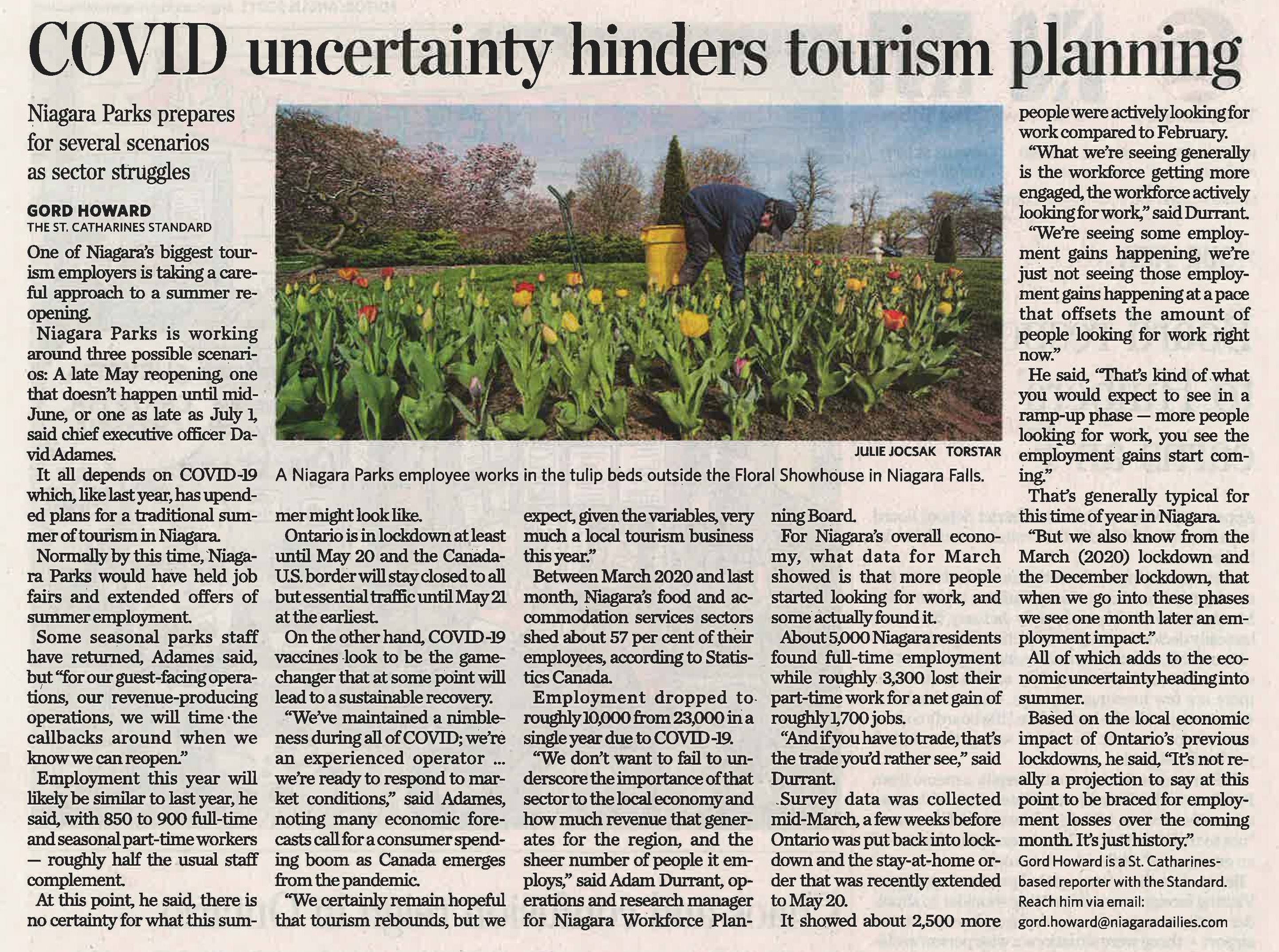 - COVID uncertainly hinders tourism planning : Niagara Parks prepares for several scenarios as sector struggles