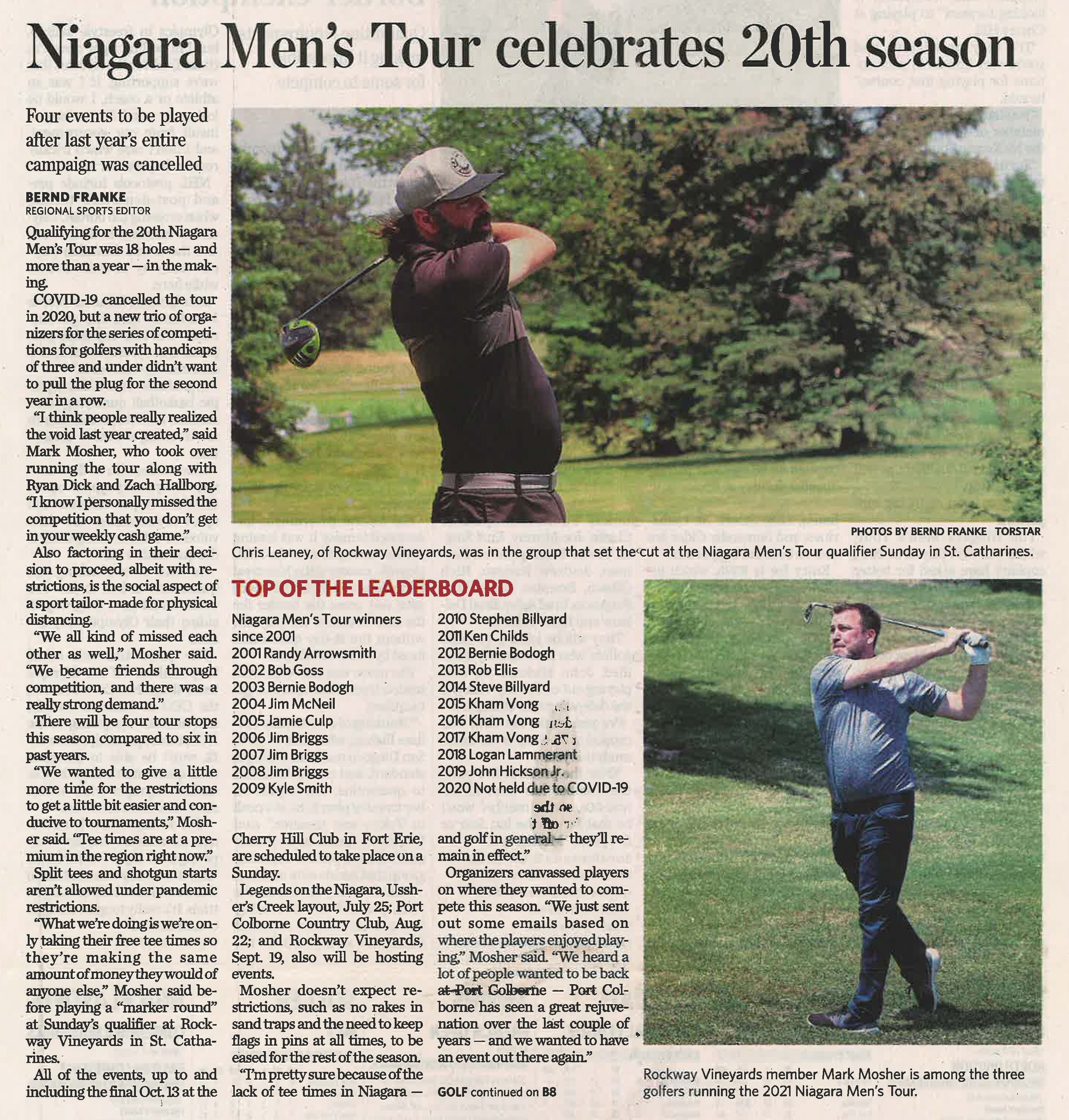 Niagara Men's Tour celebrates 20th season : four events to be played after last year's entire campaign was cancelled