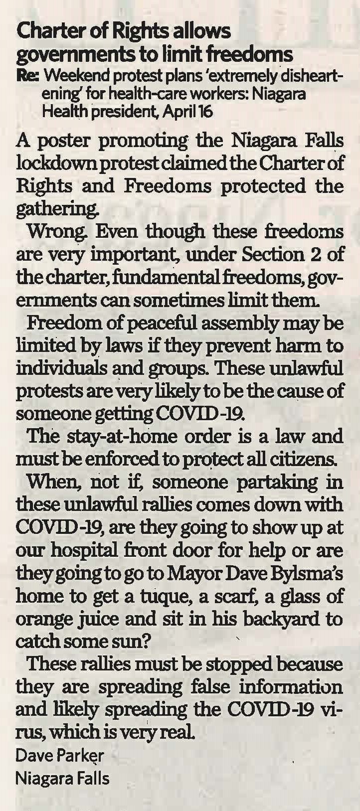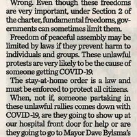 - lockdown protest / Charter of Rights and Freedoms / COVID-19 pandemic / stay-at-home order