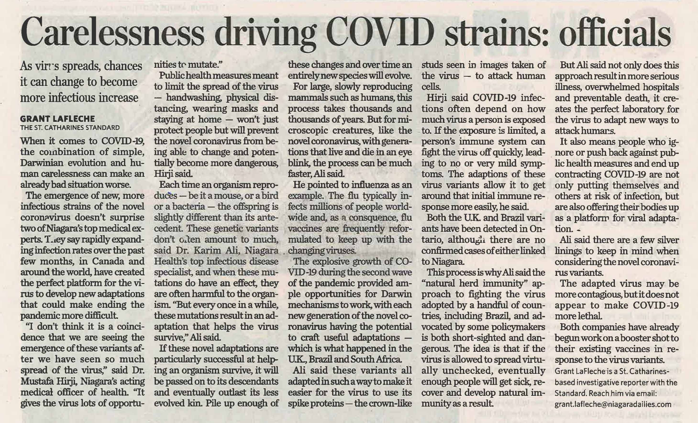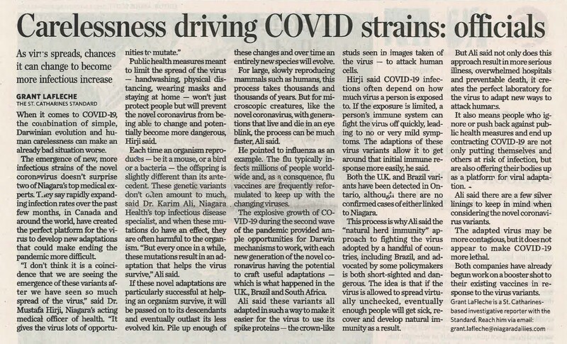 Carelessness driving COVID strains : officials : As virus spreads, chances it can change to become more infectious decrease