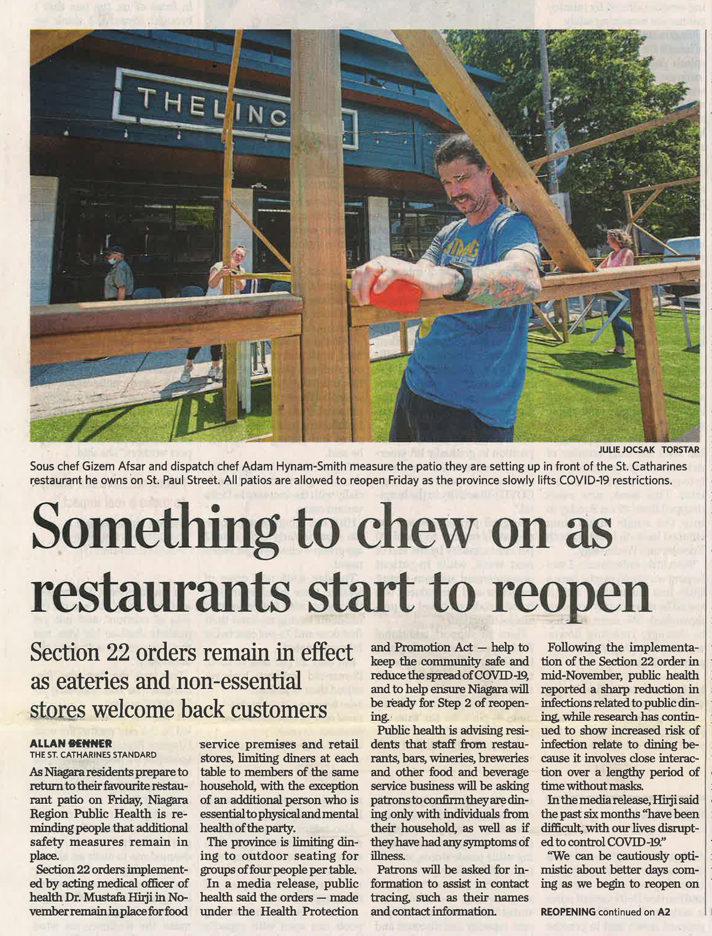 Something to chew on as restaurants start to reopen : section 22 orders remain in effect as eateries and non-essential stores welcome back customers