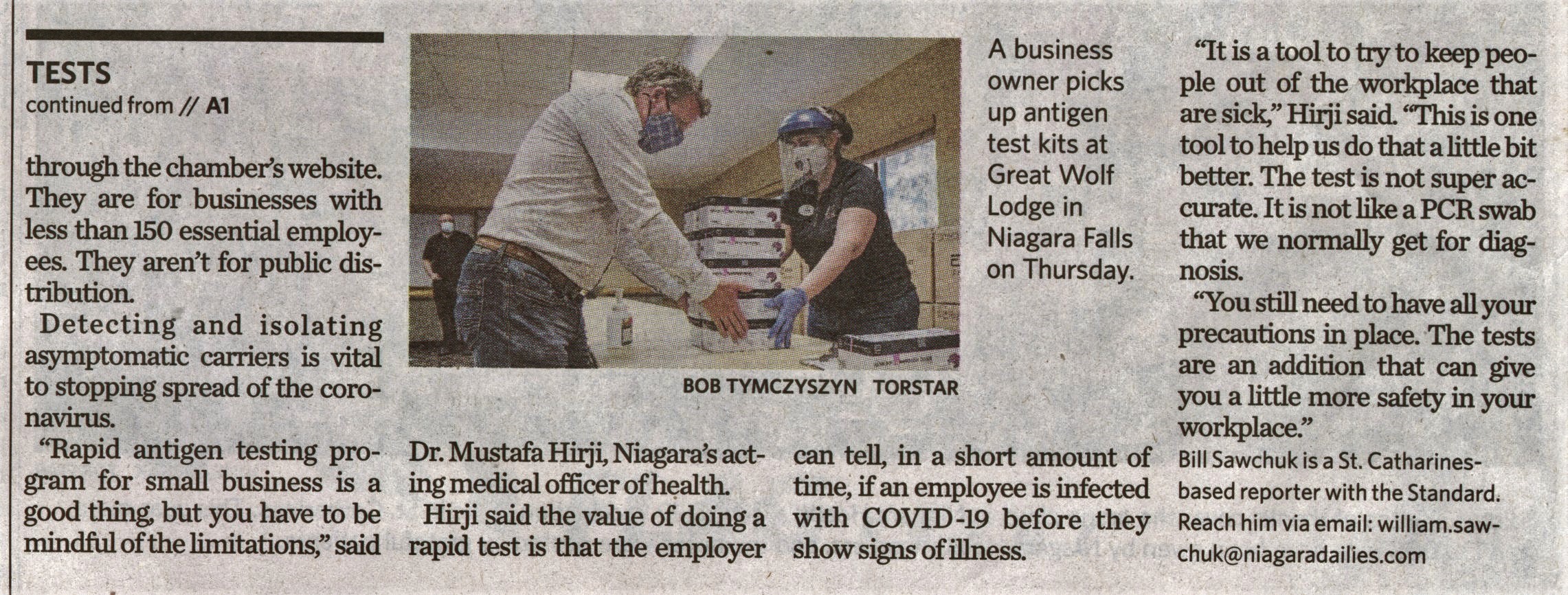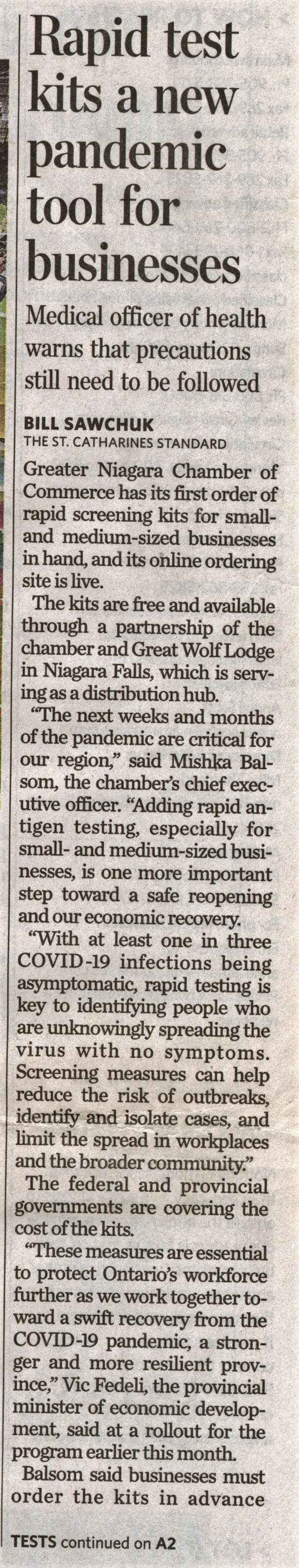 - Rapid test kits a new pandemic tool for businesses : Medical officer of health warns that precautions still need to be followed