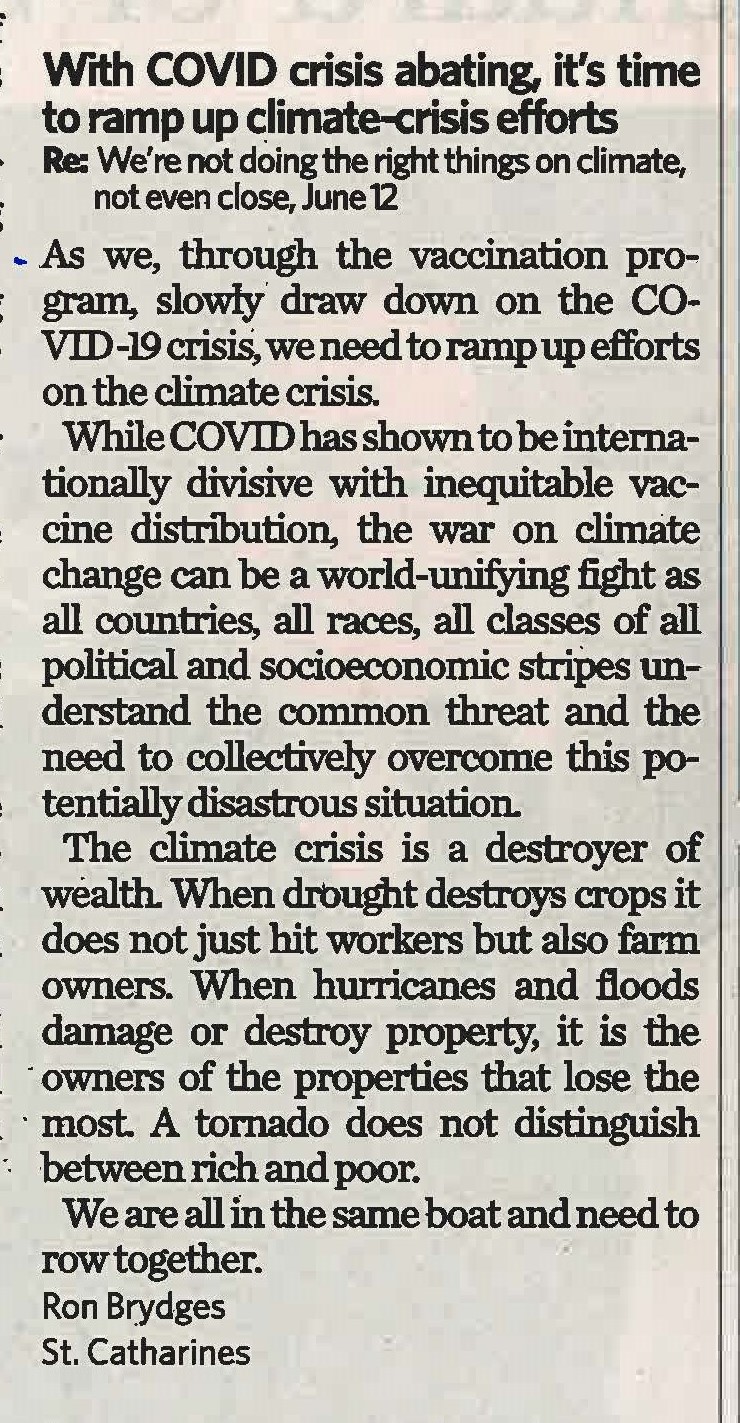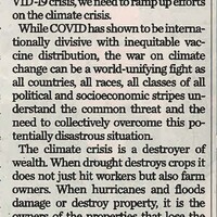 - With COVID crisis abating, it's time to ramp up climate-crisis efforts