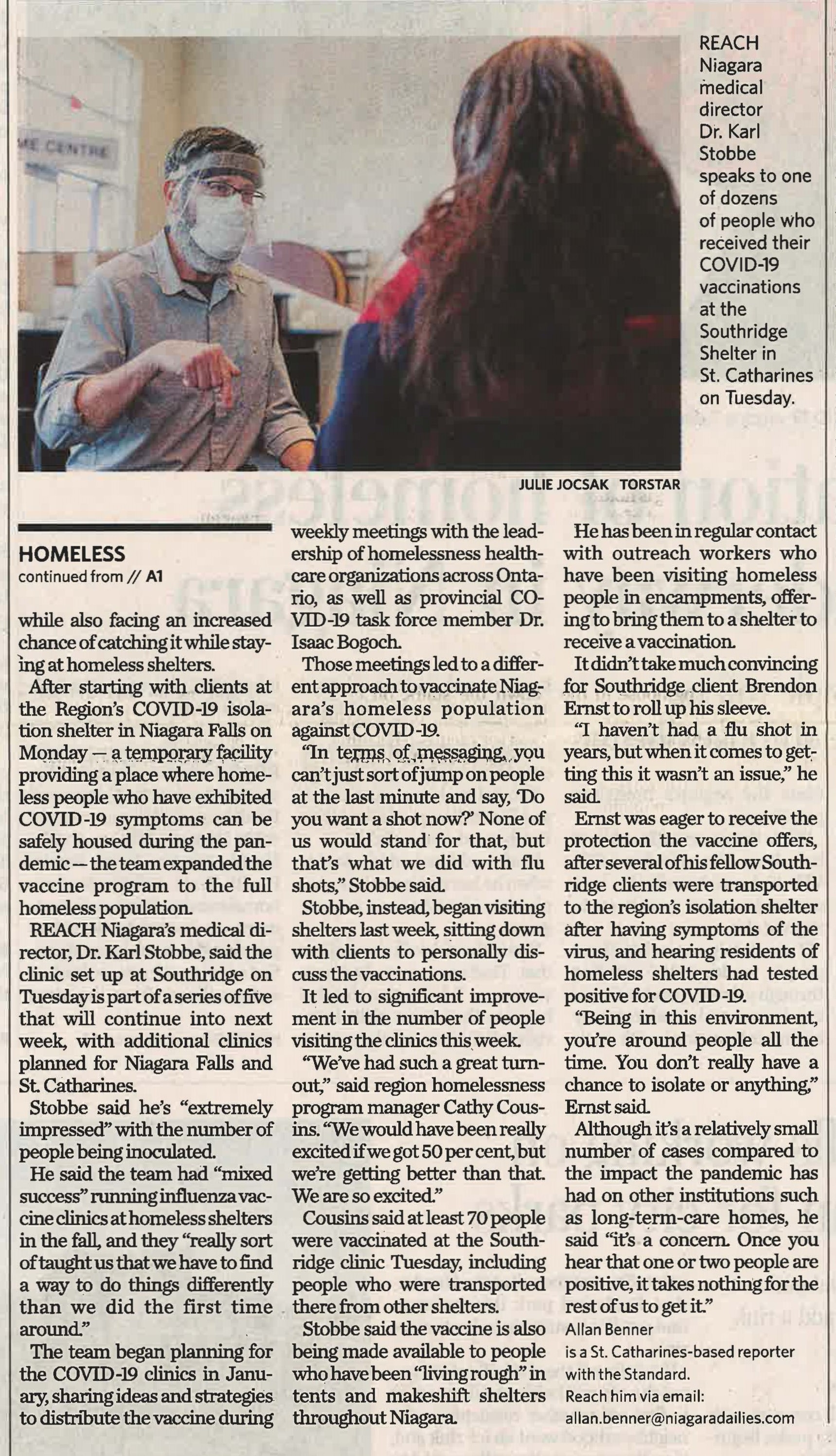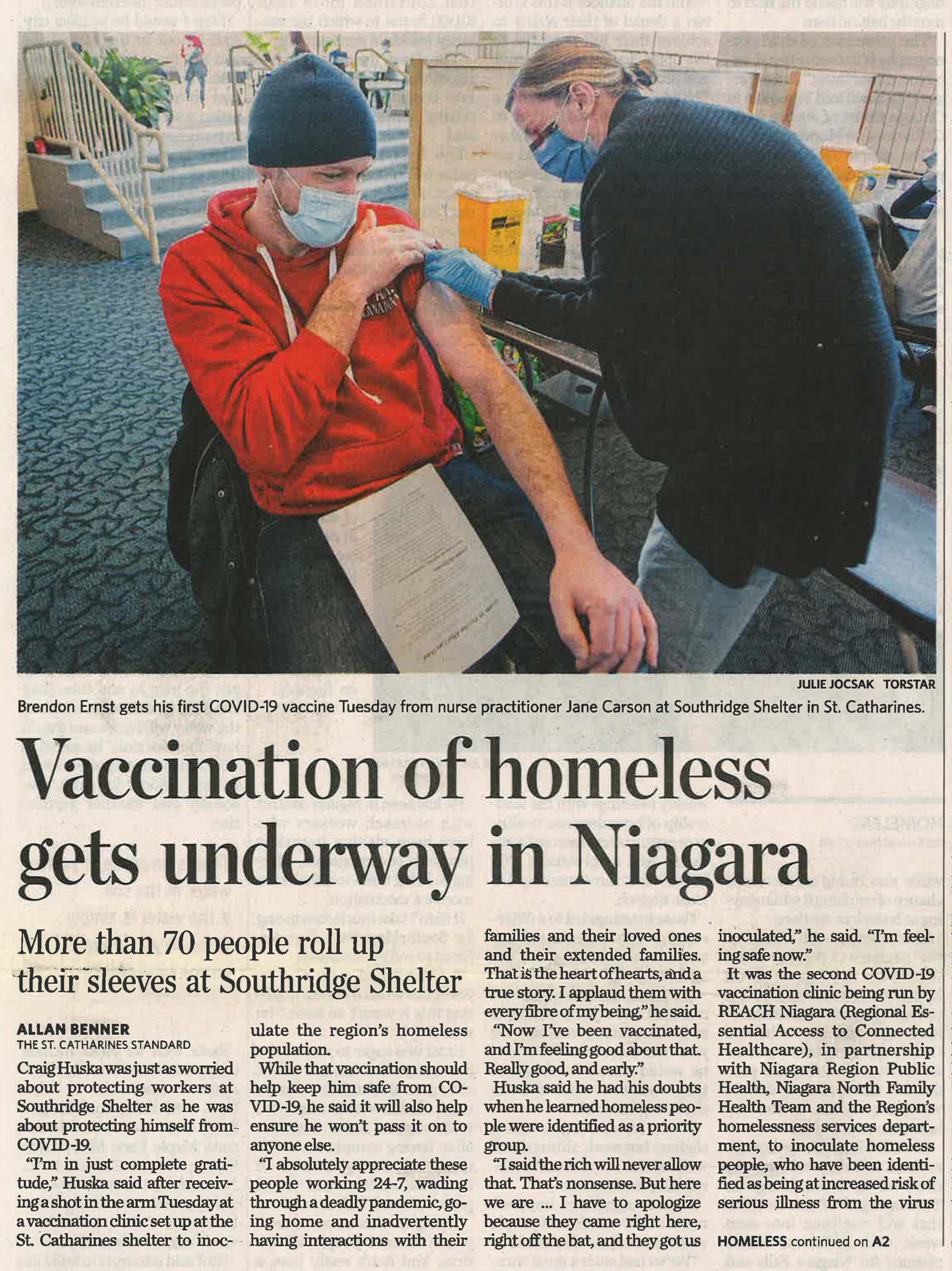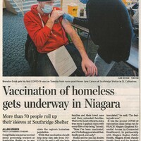 - Vaccination of homeless gets underway in Niagara : More than 70 people roll up their sleeves at Southridge Shelter