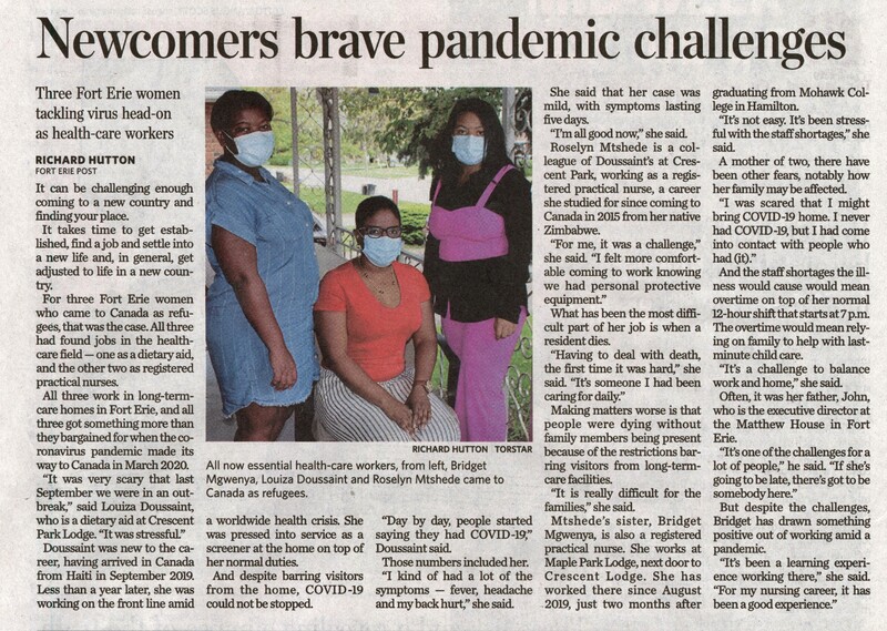 - Newcomers brave pandemic challenges : Three Fort Erie women tackling virus head-on as health-care workers