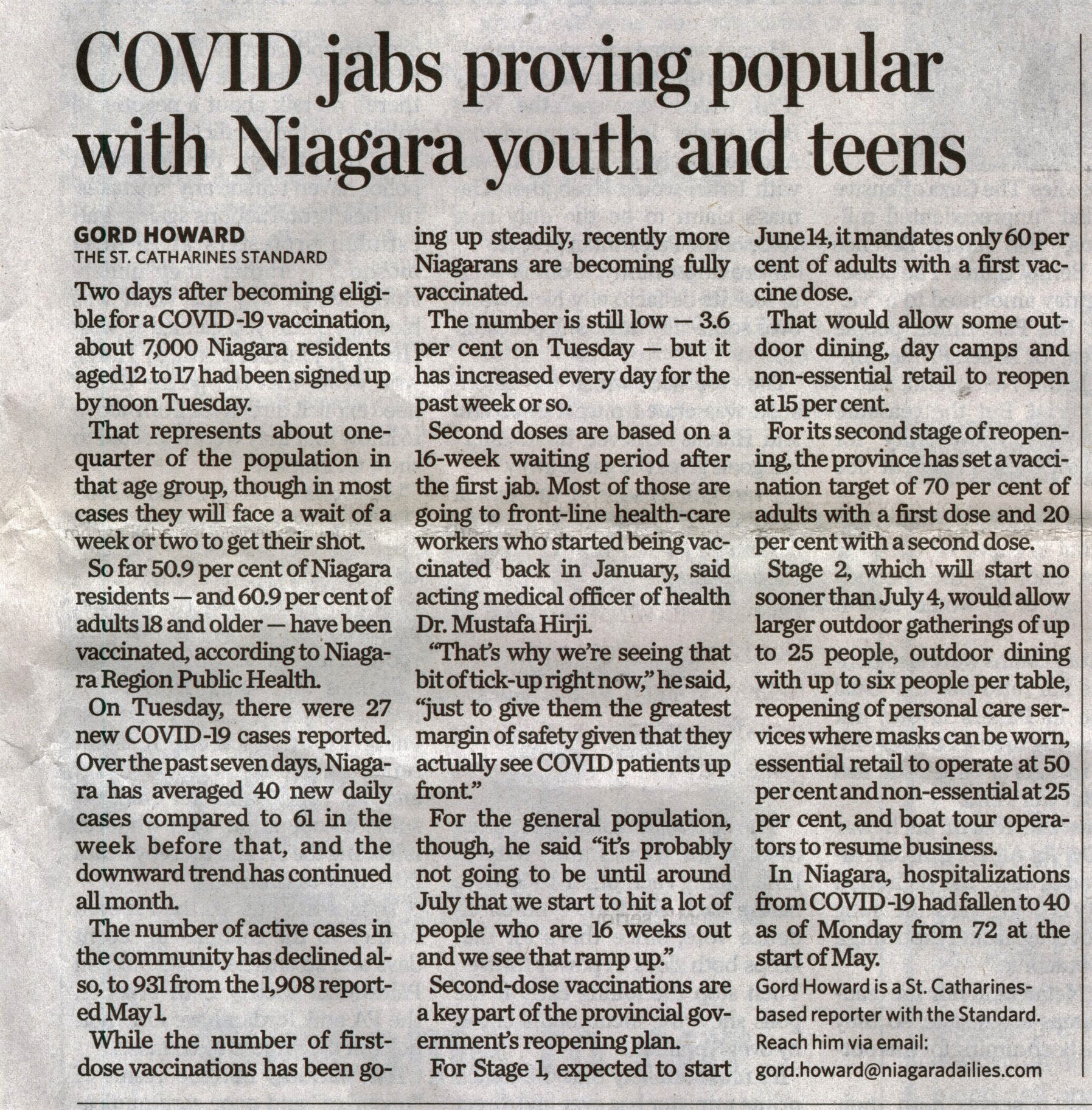 - COVID jabs proving popular with Niagara youth and teens