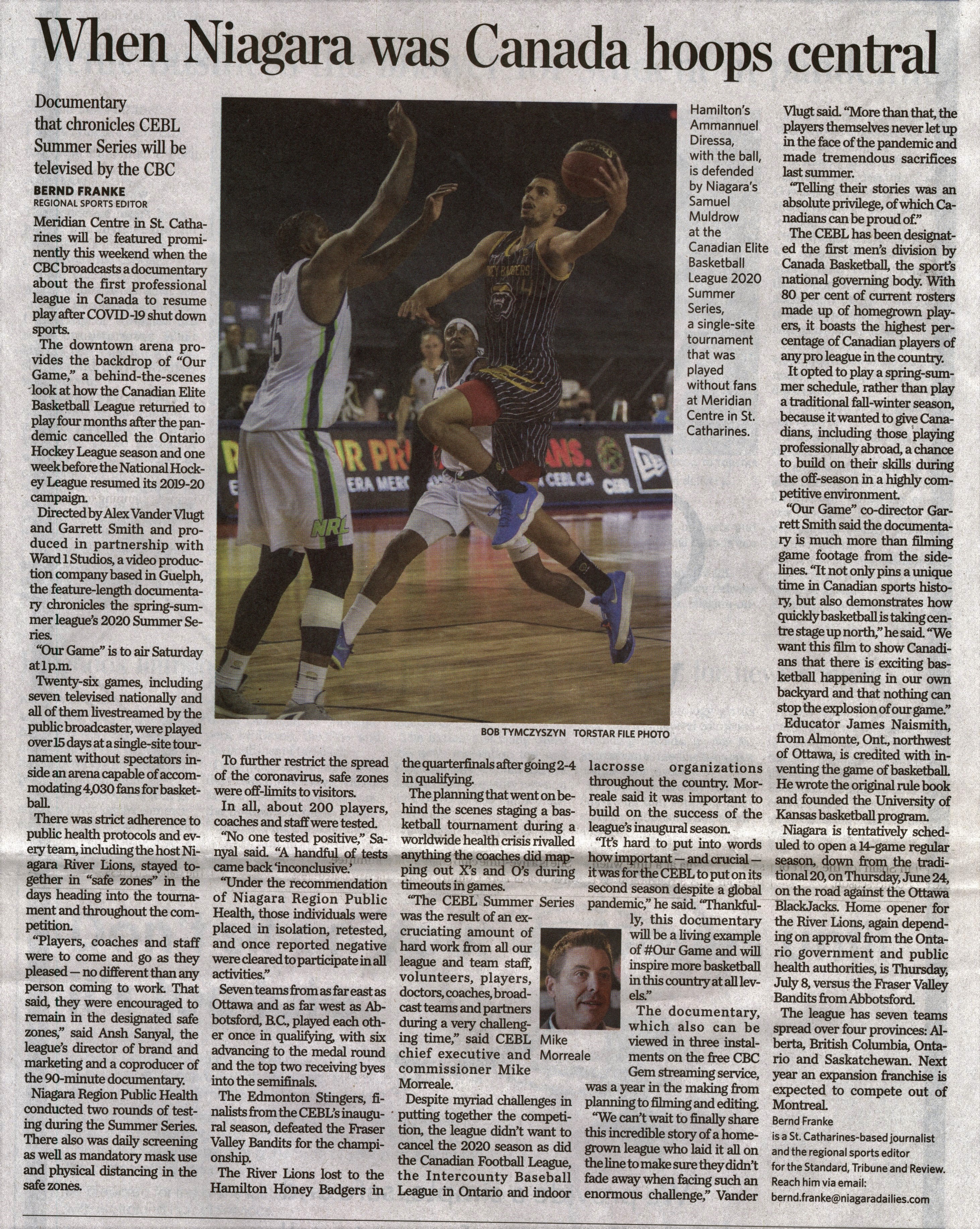 - When Niagara was Canada hoops central : Documentary that chronicles CEBL Summer Series will be televised by the CBC