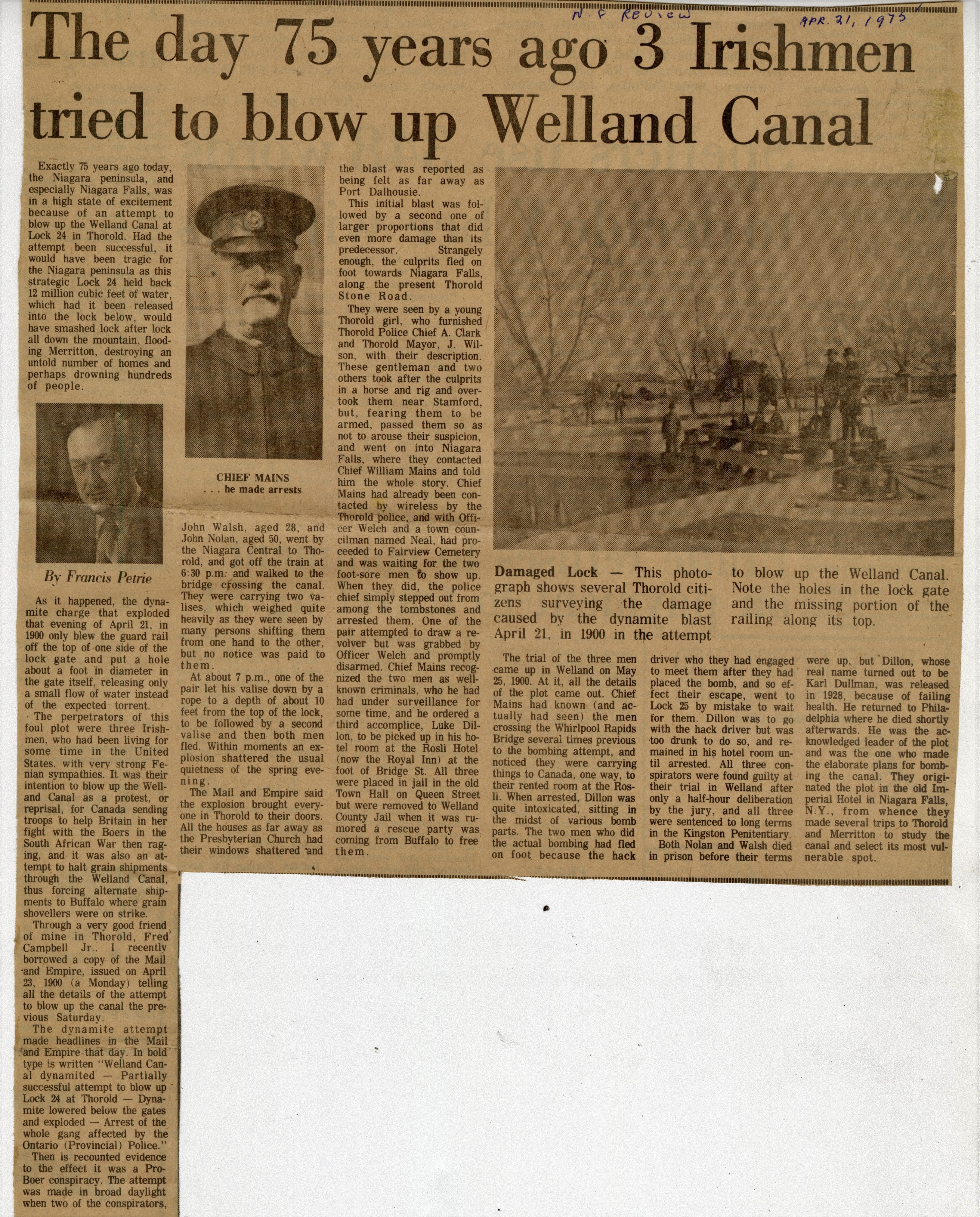 The day 75 years ago 3 Irishmen tried to blow up Welland Canal