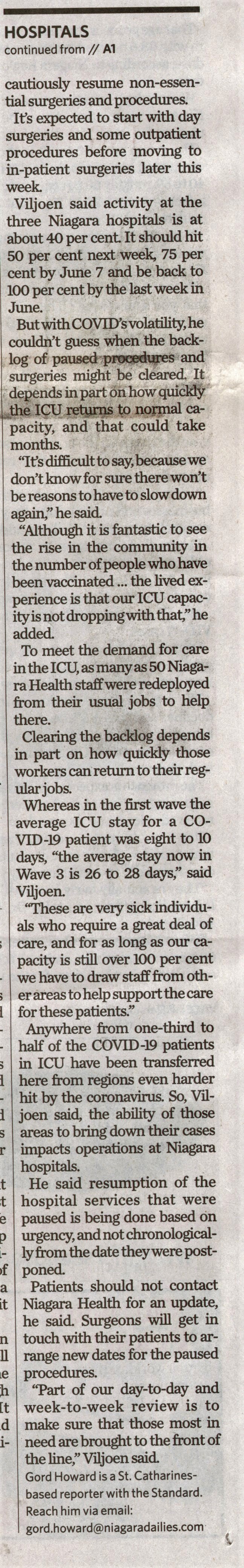 - Hospitals start work to clear backlog of procedures : Non-essential services paused six weeks ago due to surging COVID cases