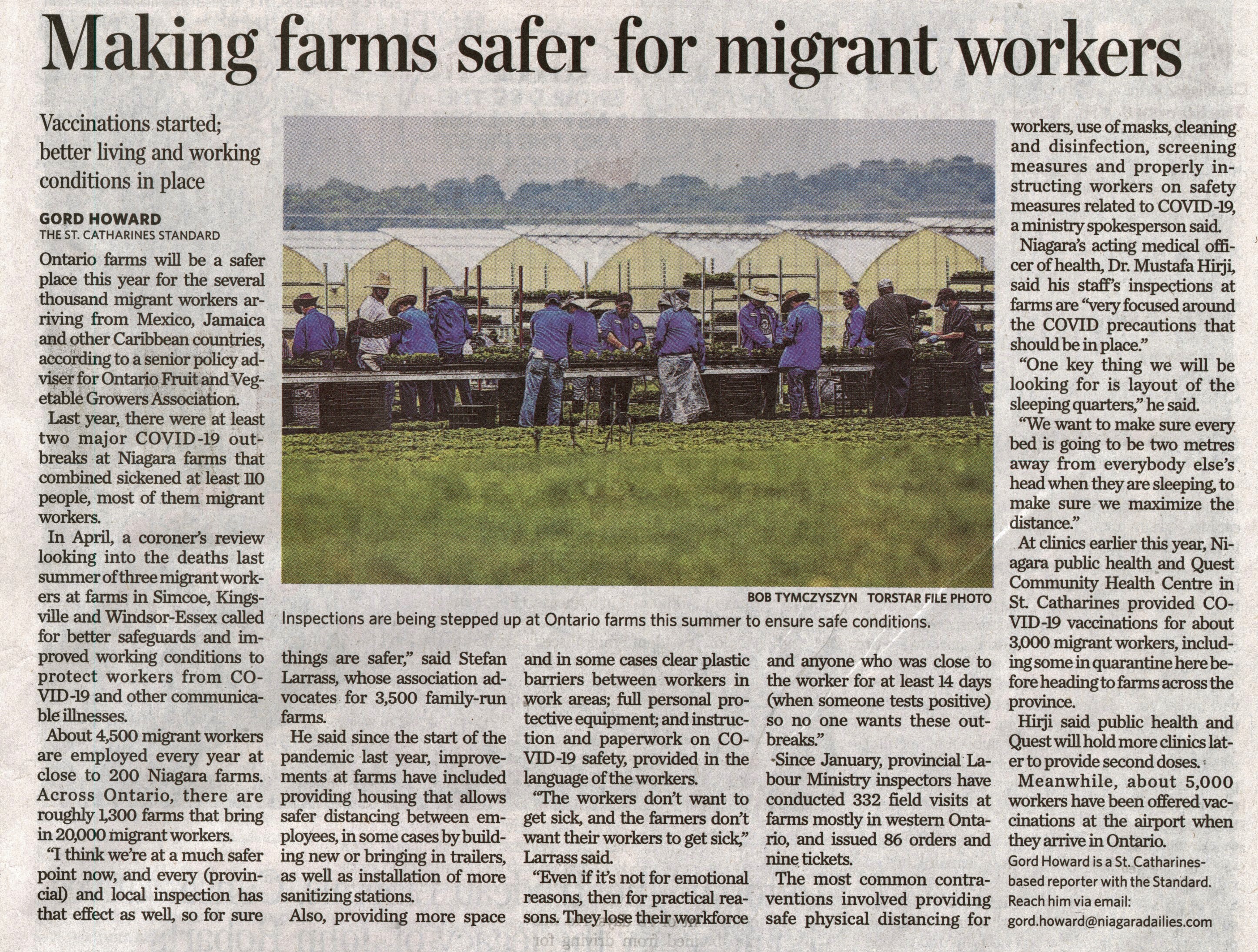 Making farms safer for migrant workers : Vaccinations started; better living and working conditions in place