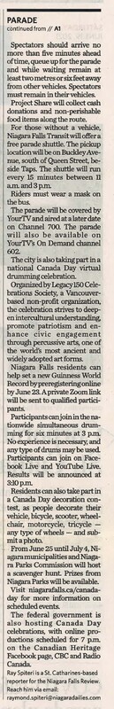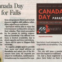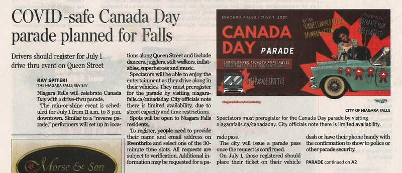 - COVID-safe Canada Day parade planned for Falls : drivers should register for July 1 drive-thru event on Queen Street
