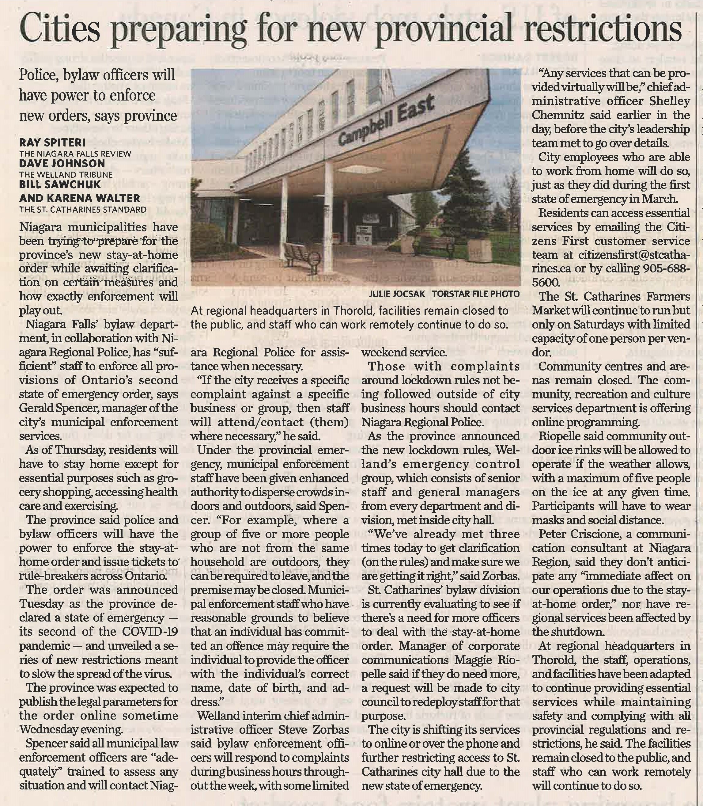 - Cities preparing for new provincial restrictions : Police, bylaw officers will have power to enforce new orders, says province