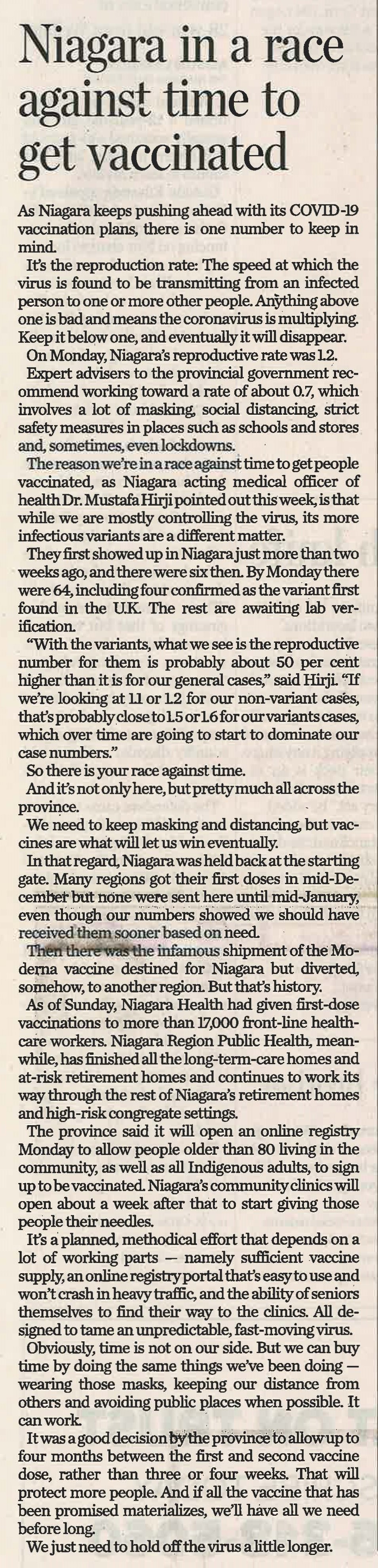 - Niagara in a race against time to get vaccinated