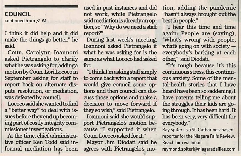 - Pietrangelo, Victor Coun. / Kerrio, Vince Coun. / Ioannoni, Carolynn Coun. / Lococo, Lori Coun. / Todd, Ken / Diodati, Jim /
