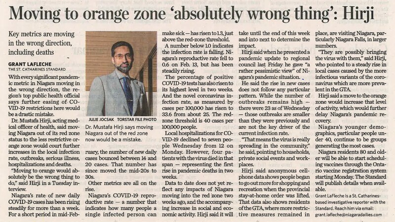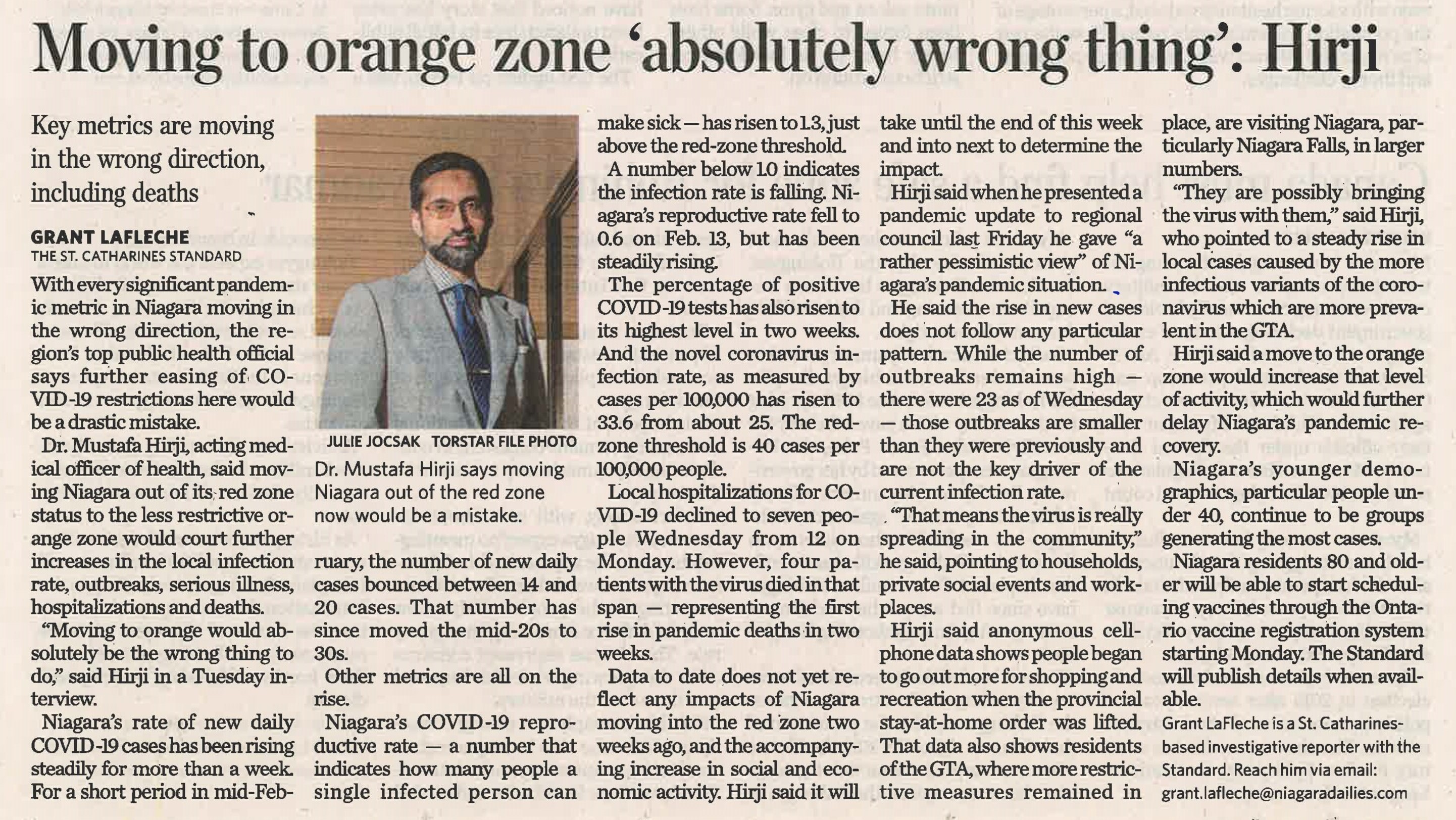 - Moving to orange zone 'absolutely wrong thing': Hirji : Key metrics are moving in the wrong direction, including deaths