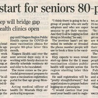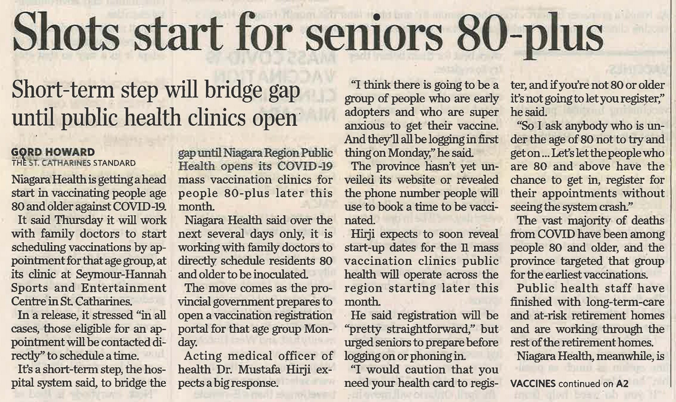 - Shots start for seniors 80-plus : Short-term step will bridge gap until public health clinics open