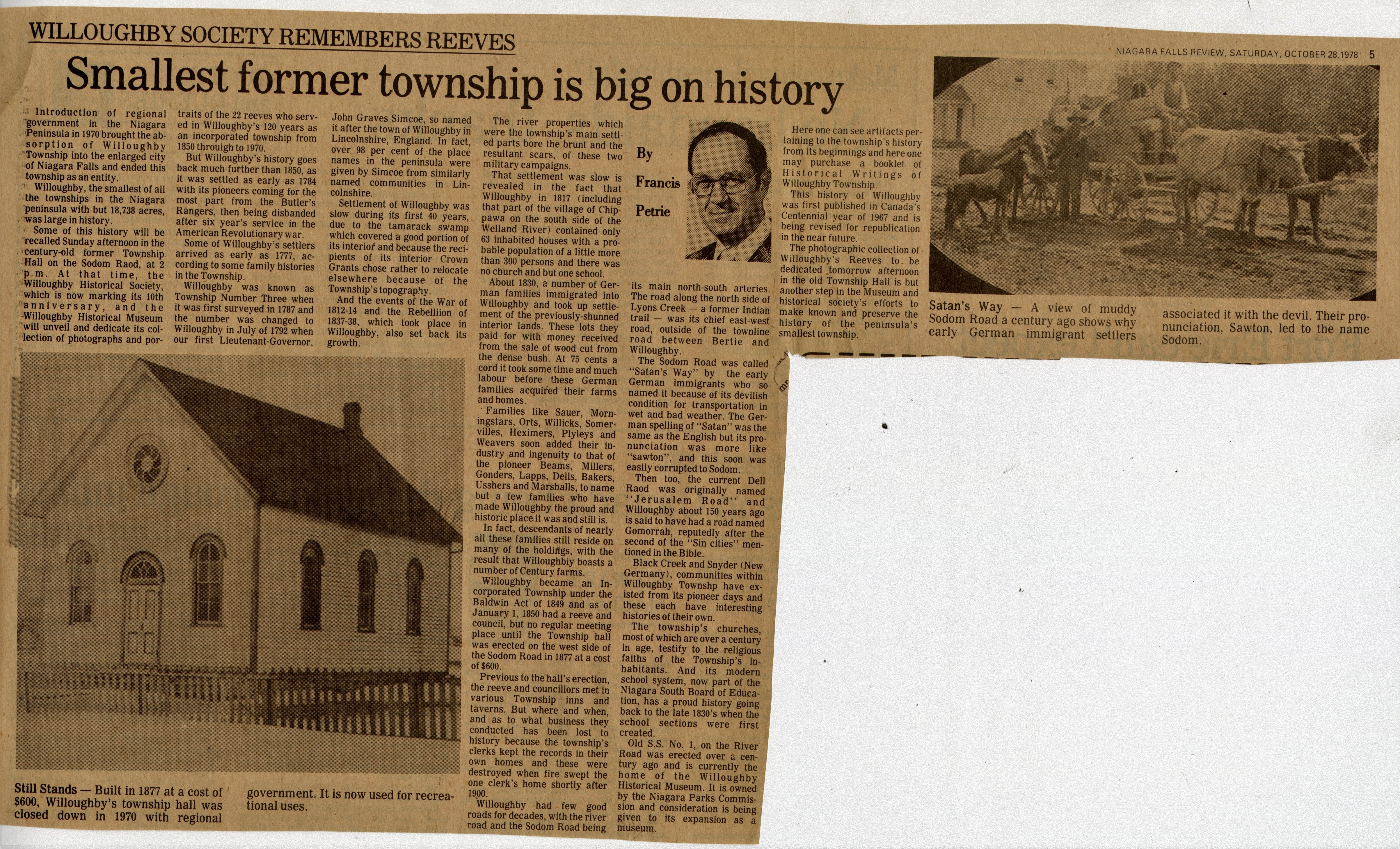 - Willoughby Society Remembers Reeves : Smallest former township is big on history