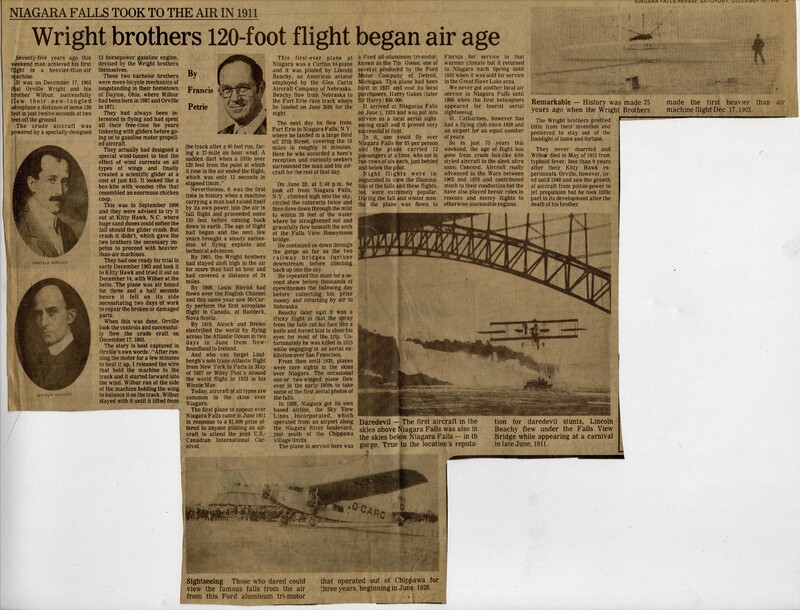 - Niagara Falls Took To The Air In 1911 : Wright brothers 120-foot flight began air age