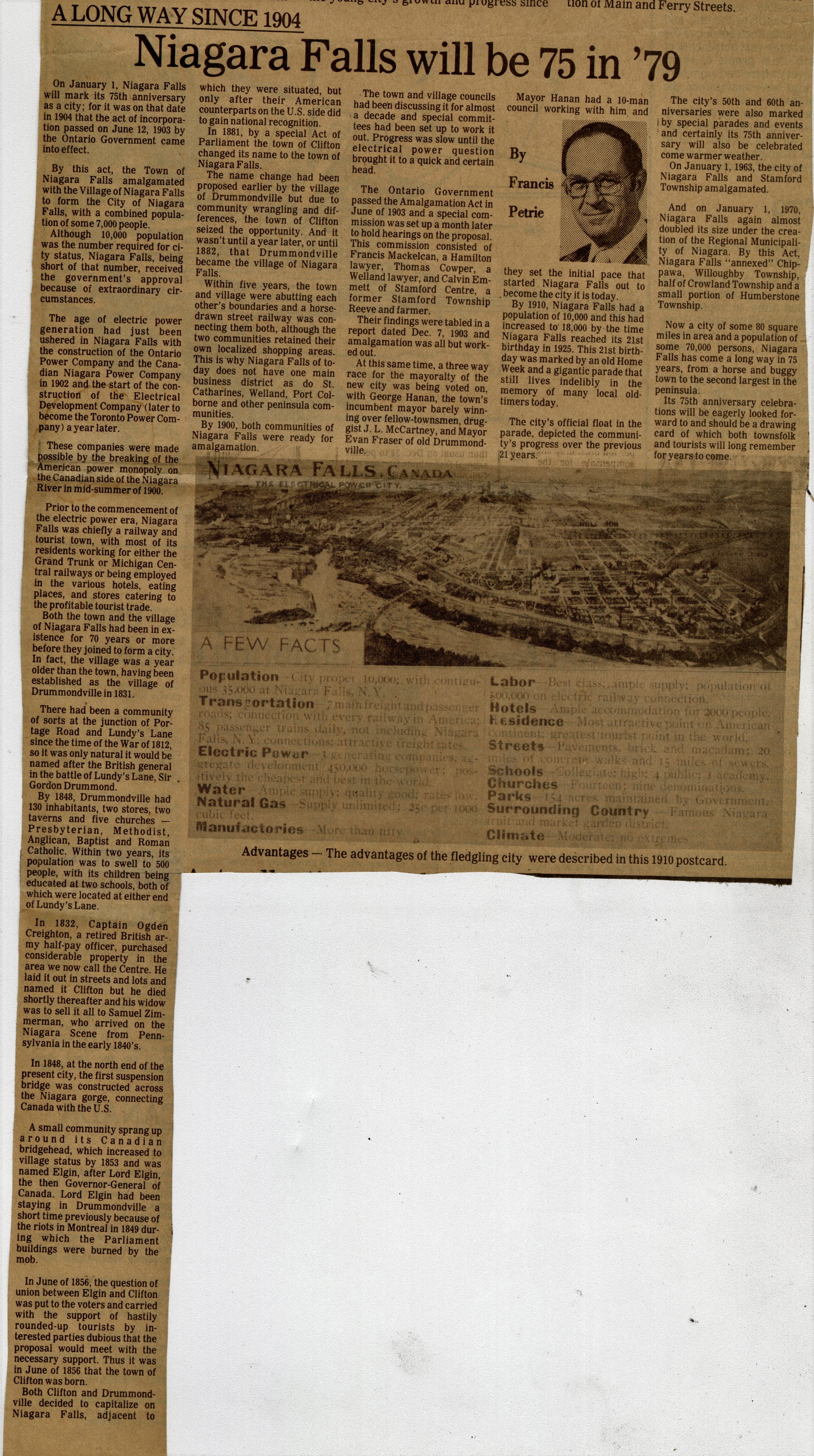 - A Long Way Since 1904 : Niagara Falls will be 75 in '79