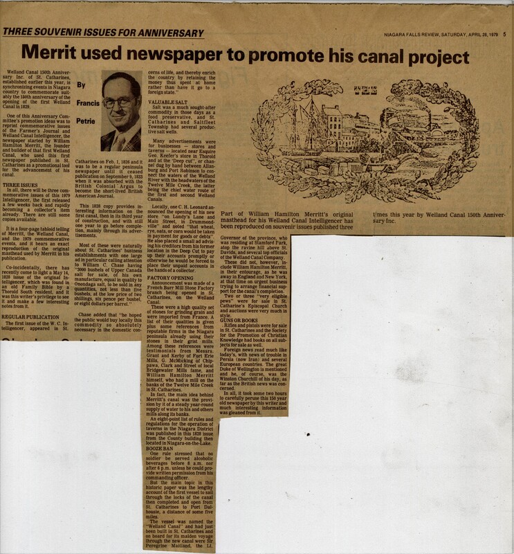 Three Souvenir Issues For Anniversary : Merrit used newspaper to promote his canal project