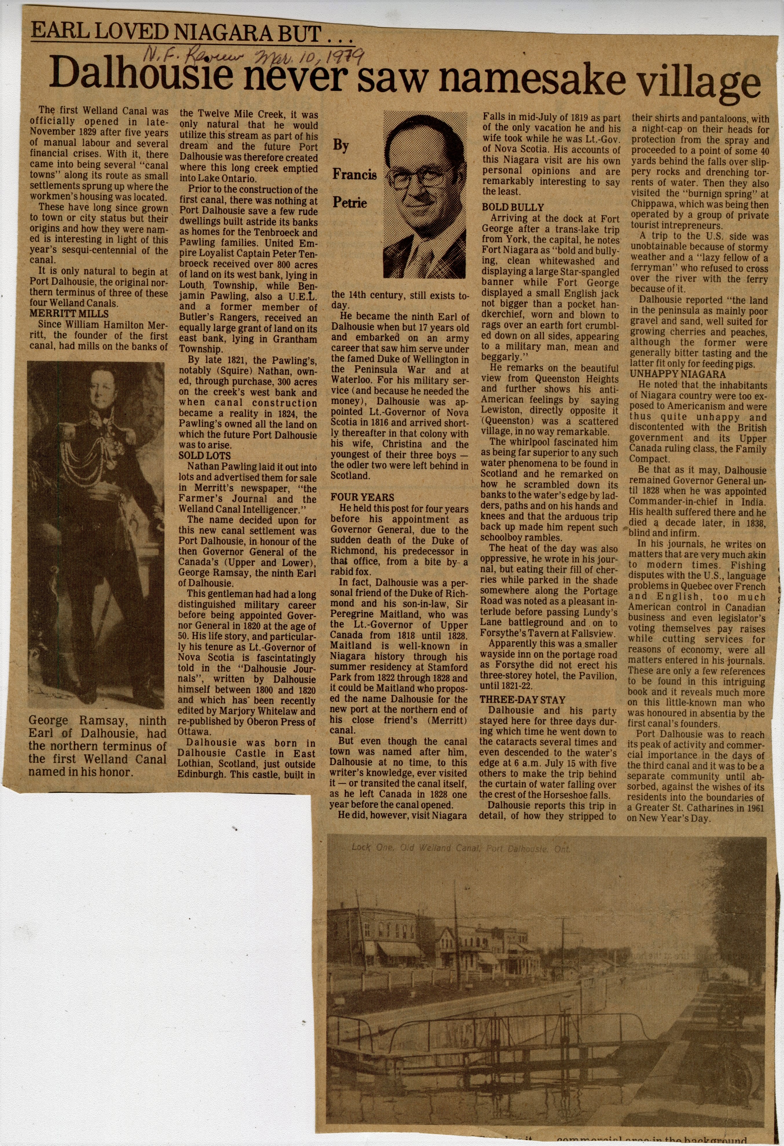- Earl Loved Niagara But ... : Dalhousie never saw namesake village