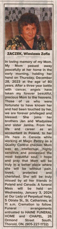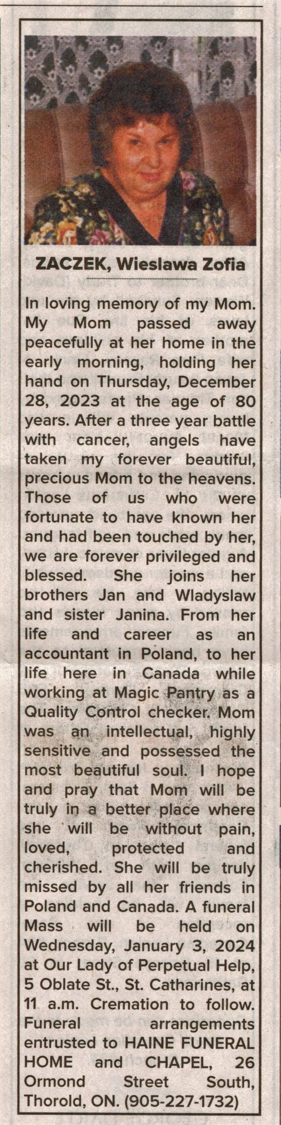 Zaczek, Wieslawa January 2 2024 pg A16.jpg