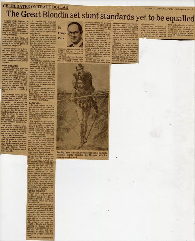 - Celebrated On Trade Dollar : The Great Blondin set stunt standards yet to be equalled