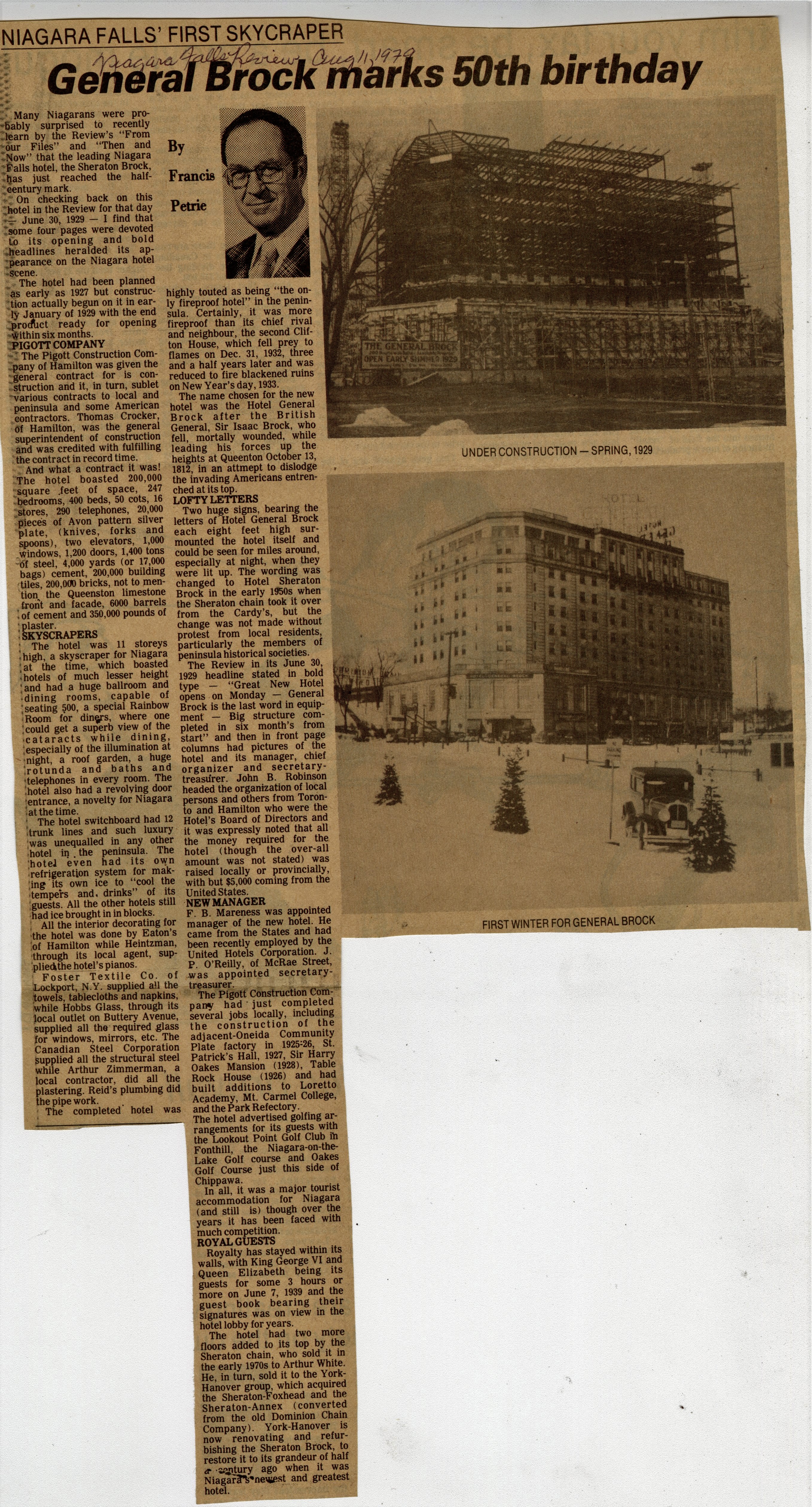 Niagara Falls' First Skyscraper : General Brock marks 50th birthday