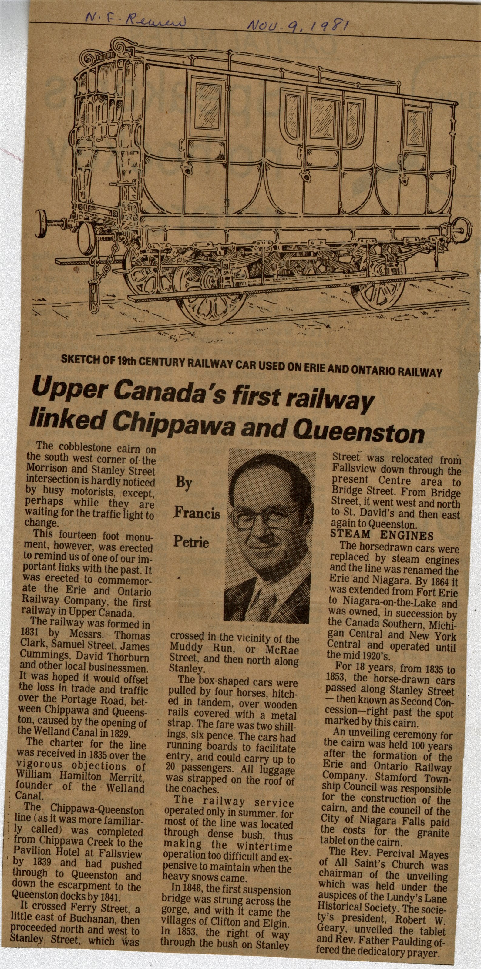 - Upper Canada's first railway linked Chippawa and Queenston