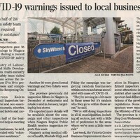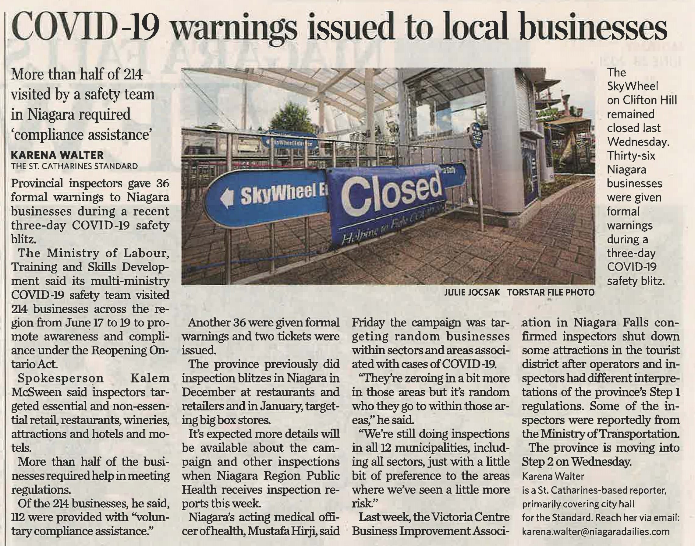 - COVID-19 warnings issued to local businesses : more than half of 214 visited by a safety team in Niagara required compliance assistance