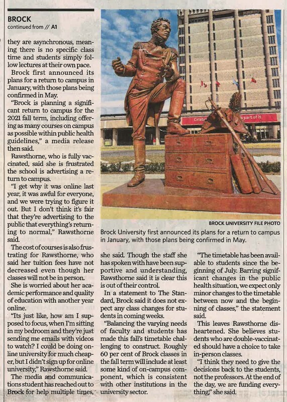 - Brock student upset by lack of in-person classes: School says roughly 60 per cent of fall term classes will include some kind of on-campus component