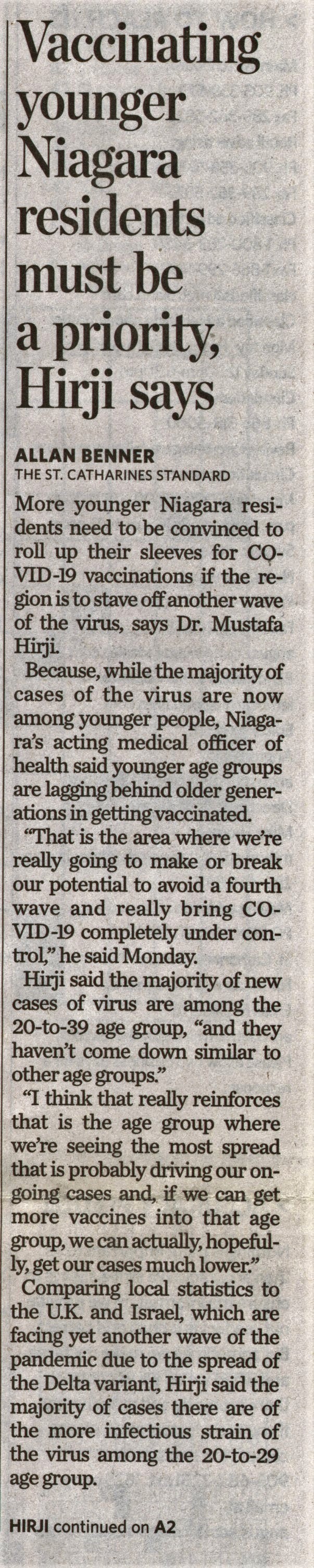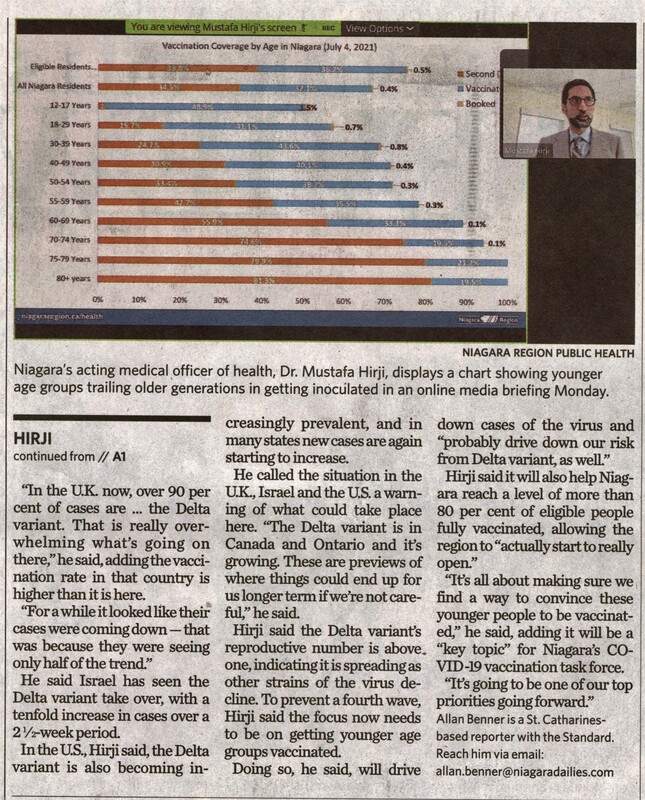 - Vaccinating younger Niagara residents must be a priority, Hirji says