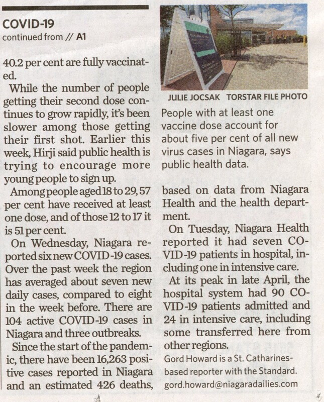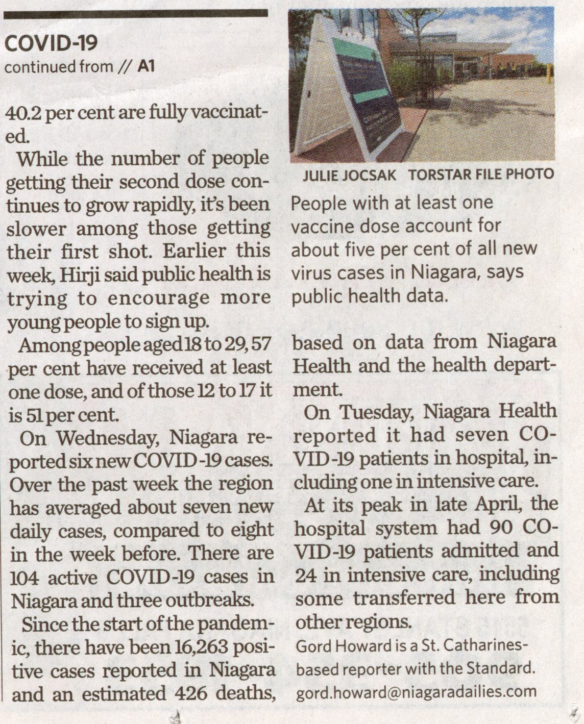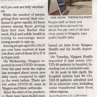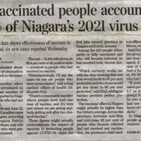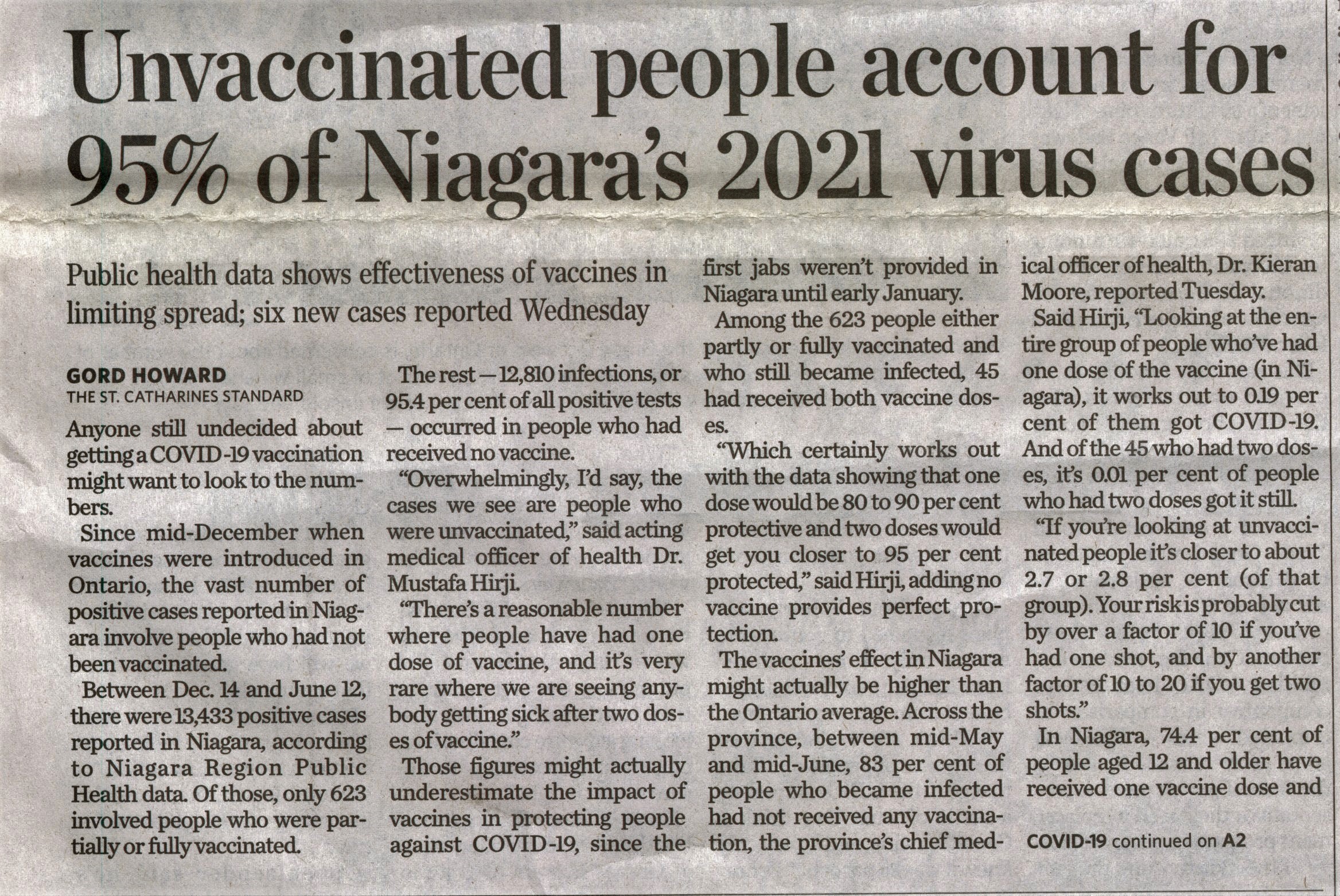 - Unvaccinated people account for 95% of Niagara's 2021 virus cases : Public health data shows effectiveness of vaccines in limiting spread; six new cases reported Wednesday