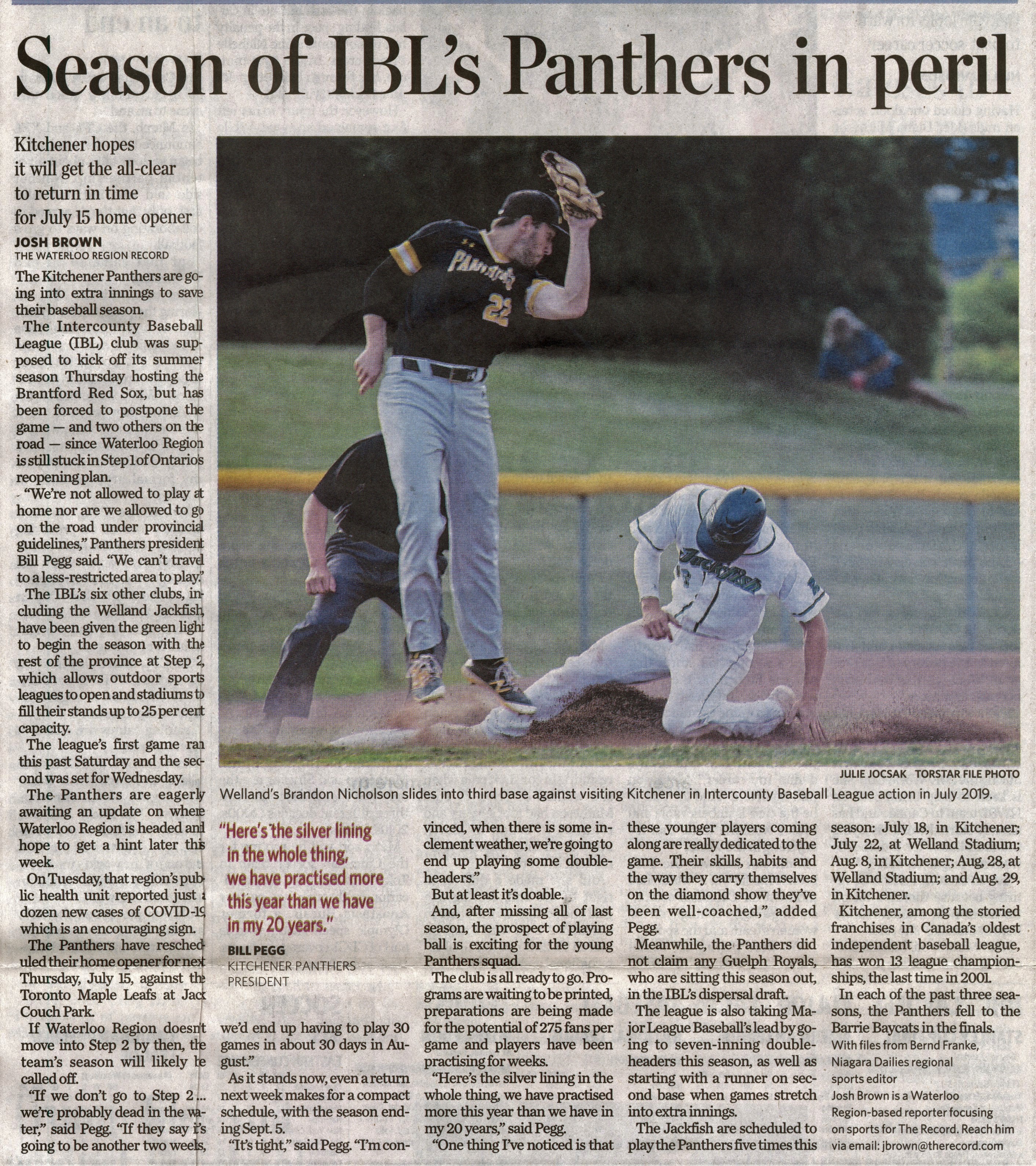 - Season of IBL's Panthers in peril : Kitchener hopes it will get the all-clear to return in time for July 15 home opener