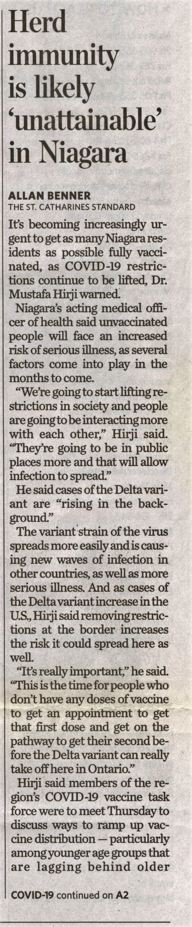 - Hirji, Mustafa Dr. / Delta variant / vaccines