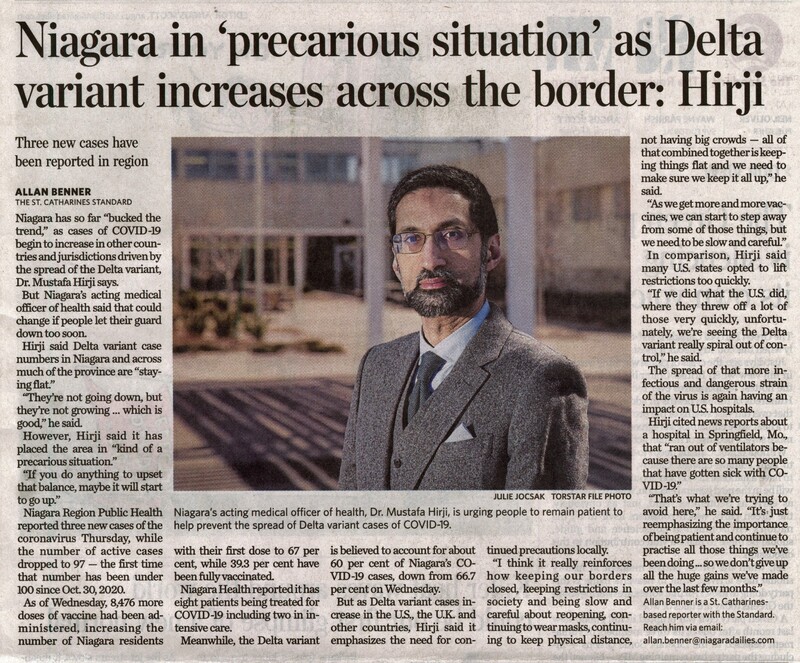 Niagara in 'precarious situation' as Delta variant increases across the border: Hirji : Three new cases have been reported in region