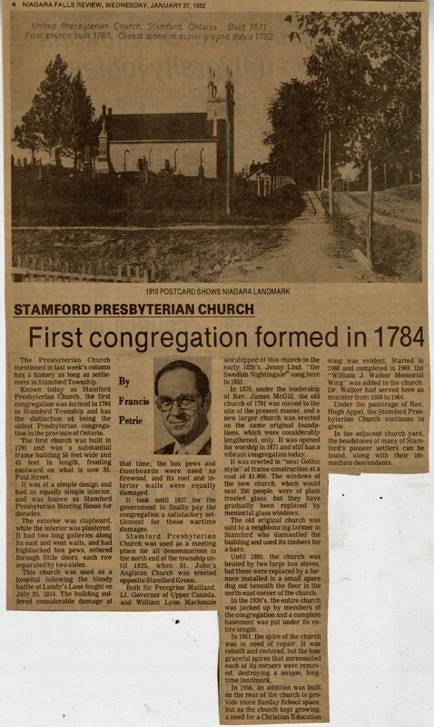 - Stamford Presbyterian Church : First congregation formed in 1784