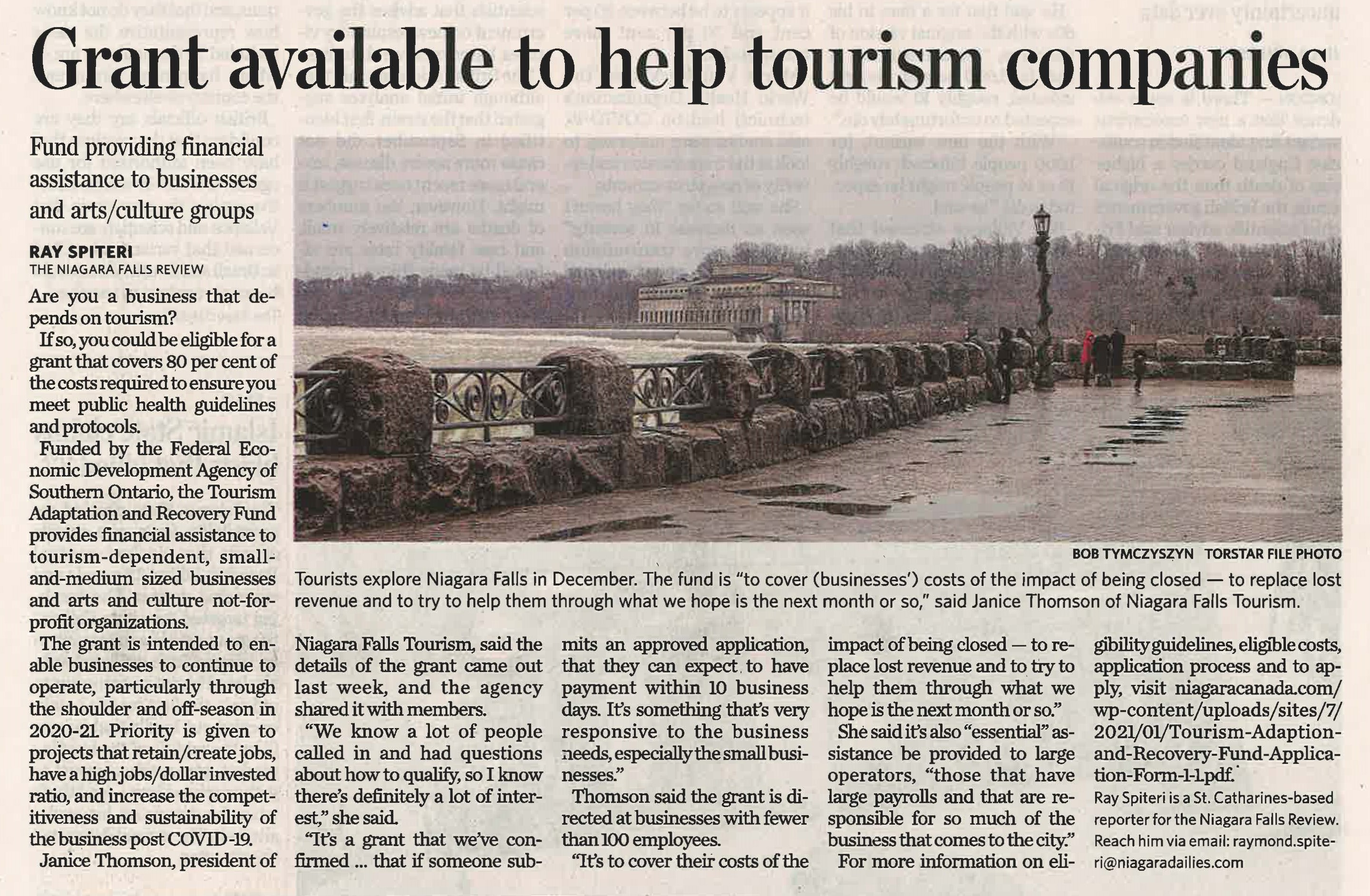 - Thomson, Janice / Niagara Falls Tourism / Federal Economic Development Agency of Southern Ontario / Tourism Adaptation and Recovery Fund / COVID 19 pandemic