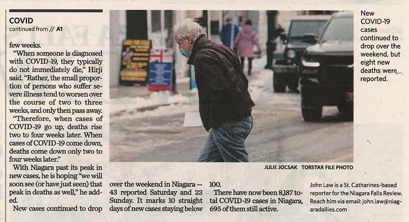 Niagara COVID cases drop but deaths spike : Fatality count rises by eight, now stands at 344 since pandemic began