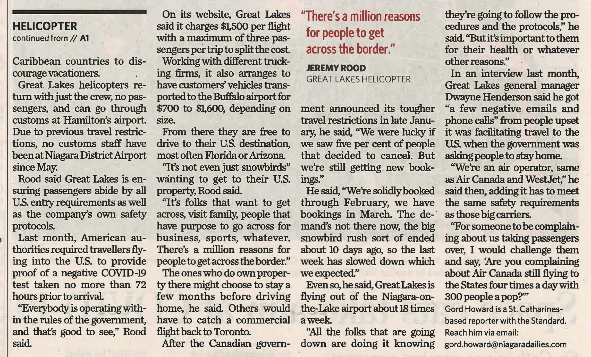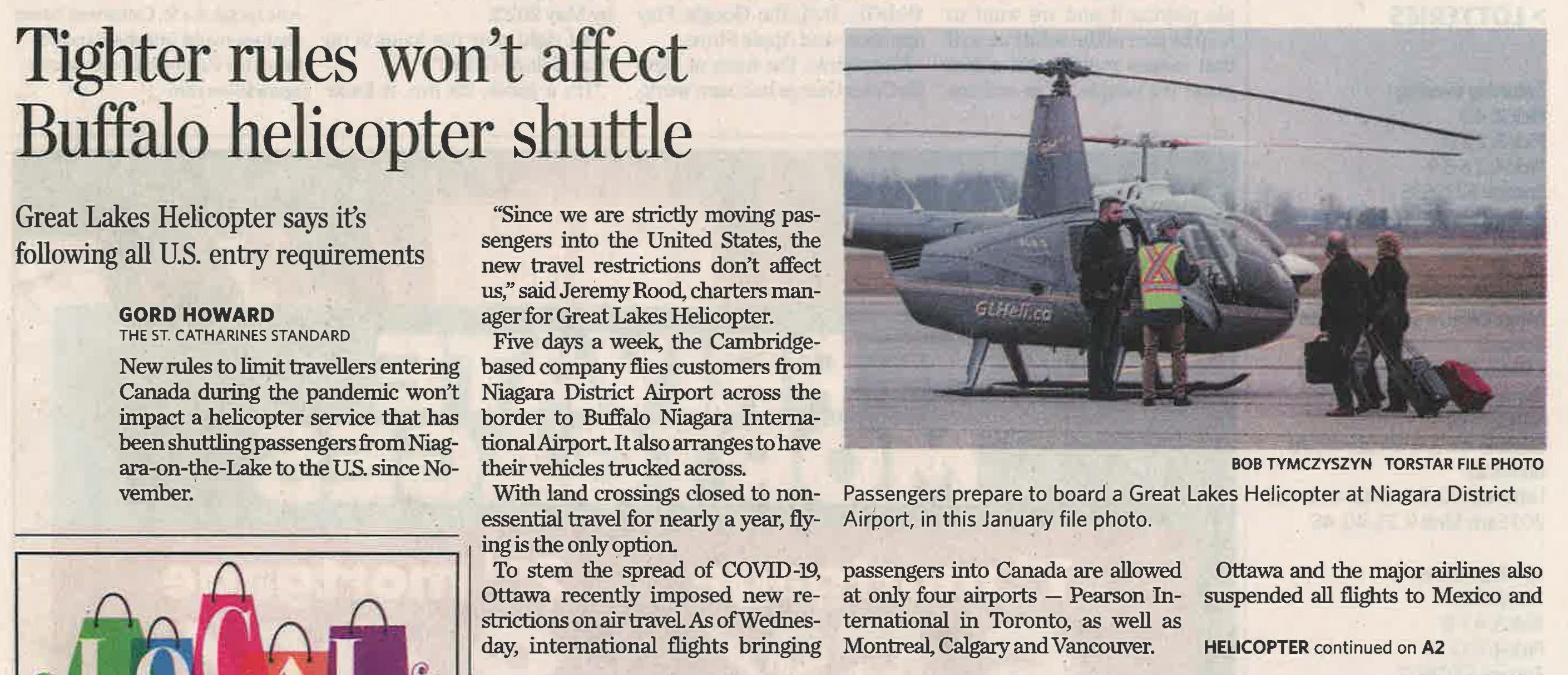 - Tighter rules won't affect Buffalo helicopter shuttle : Great Lakes Helicopter says it's following all U.S. entry requirements