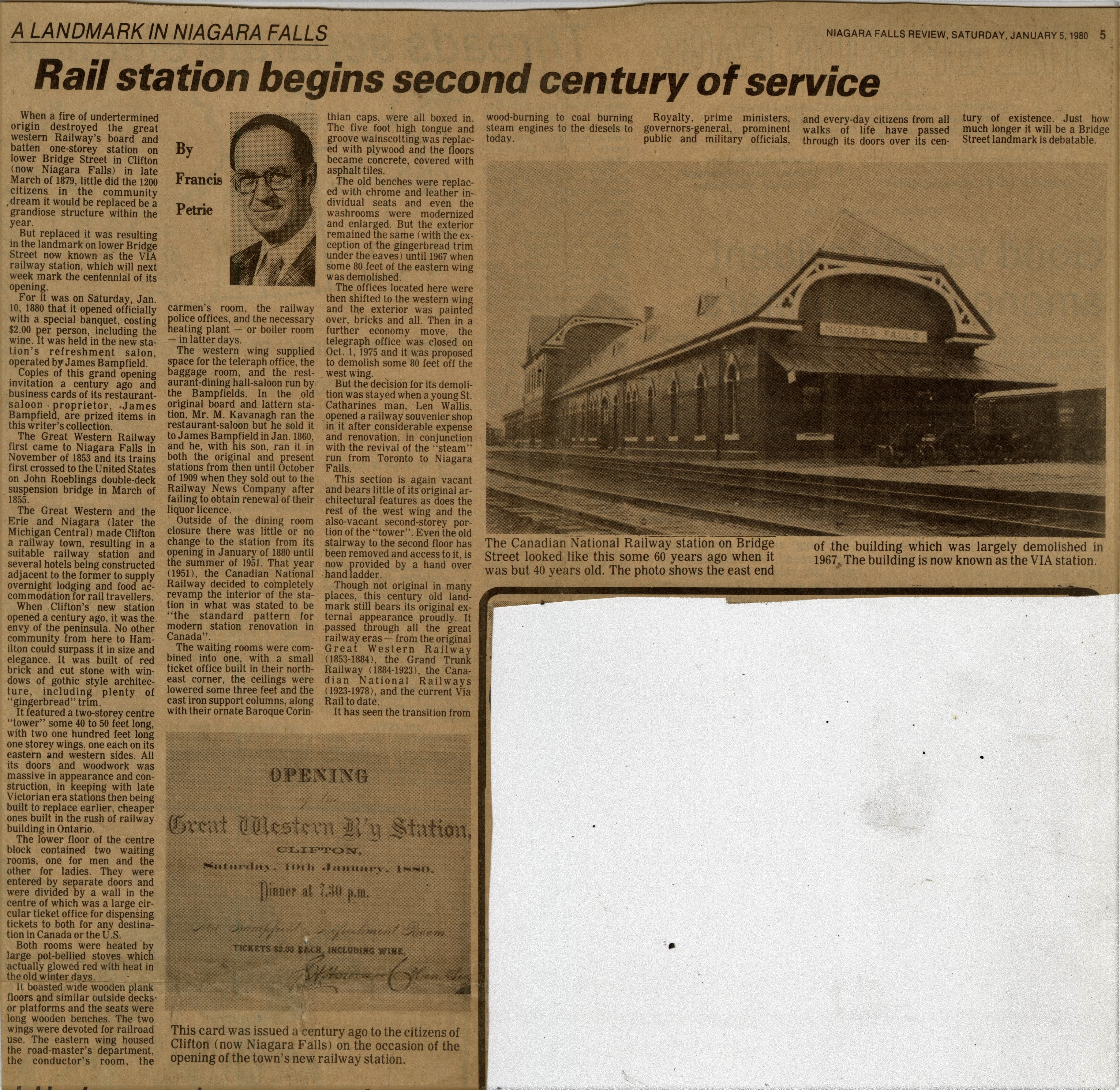 - A Landmark In Niagara Falls : Rail station begins second century of service