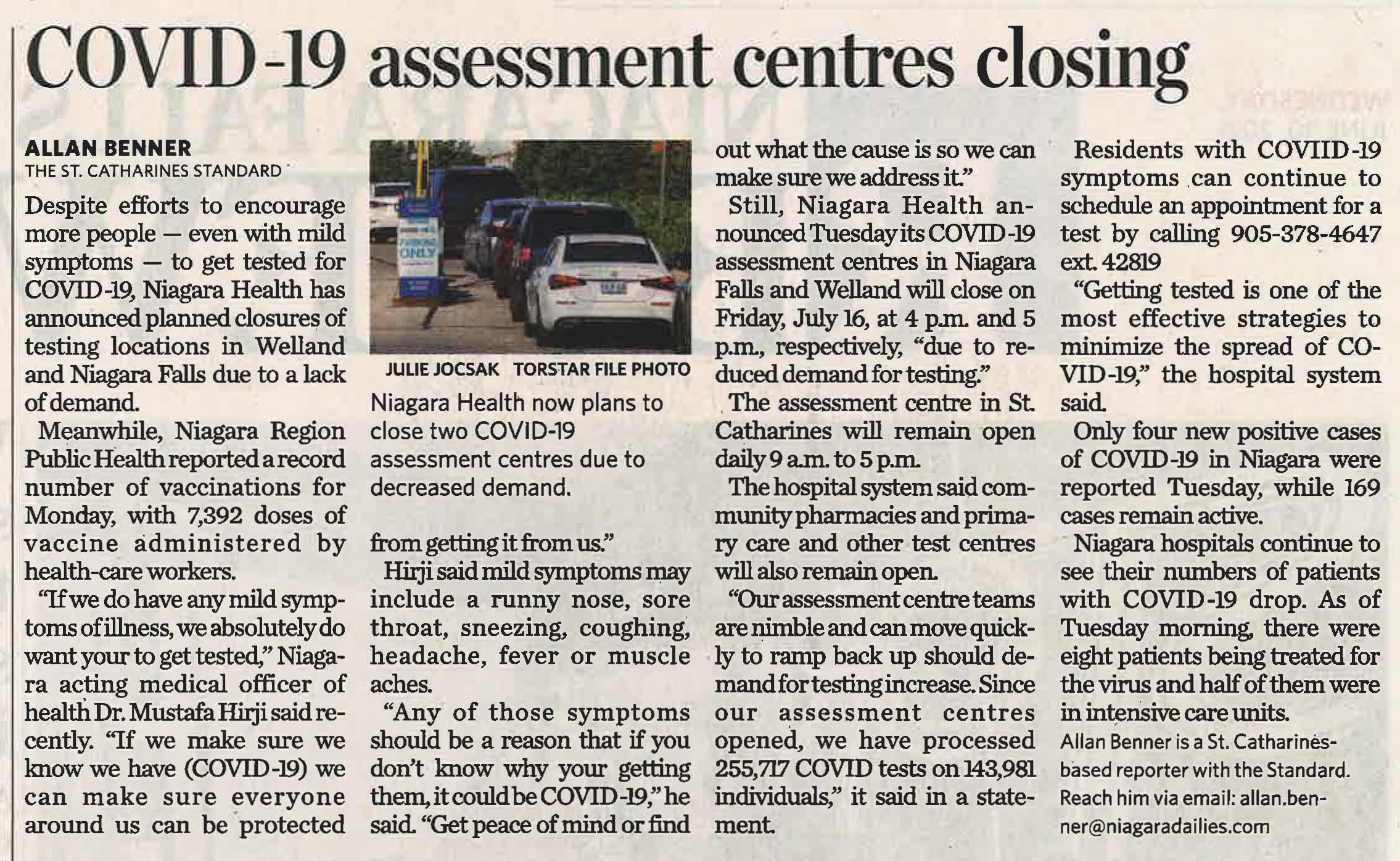 COVID-19 assessment centres closing