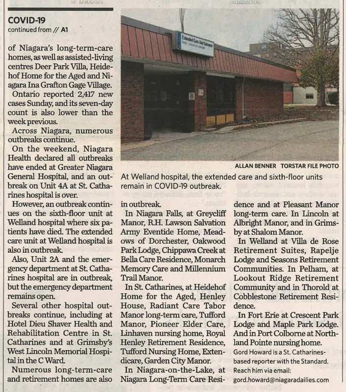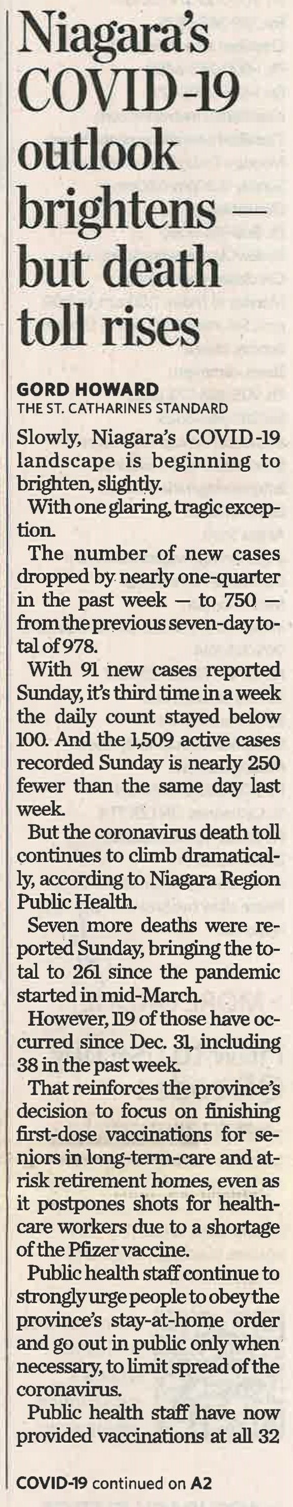 - Niagara's COVID-19 outlook brightens - but death toll rises