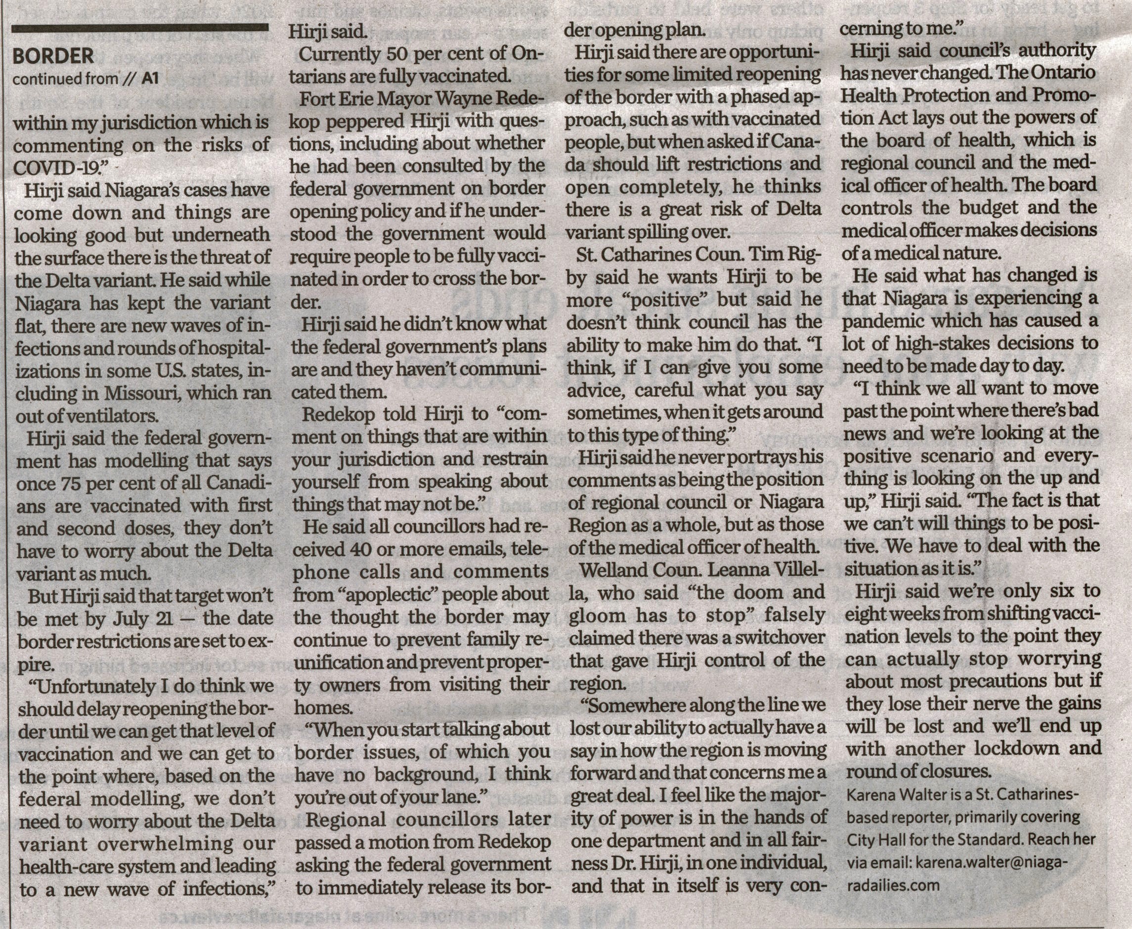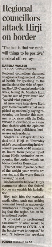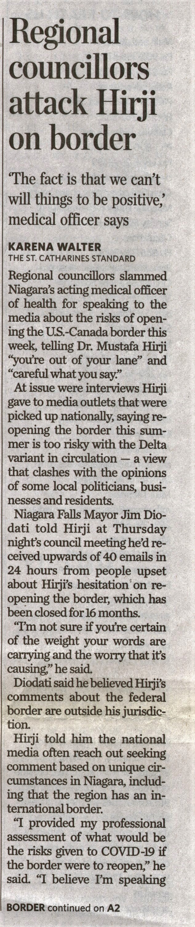 - Hirji, Mustafa Dr. / Diodati, Jim (Mayor) / border / Delta variant