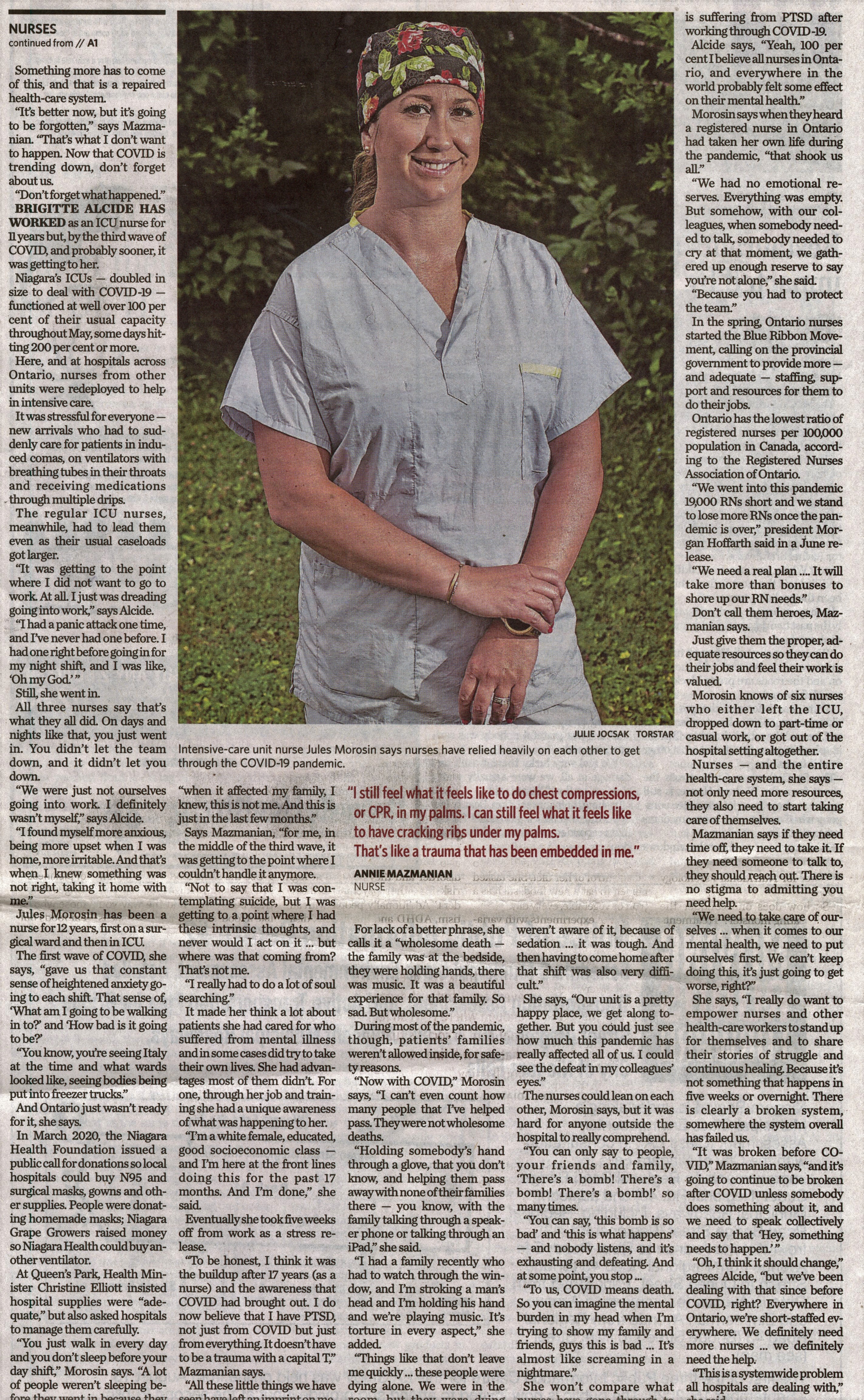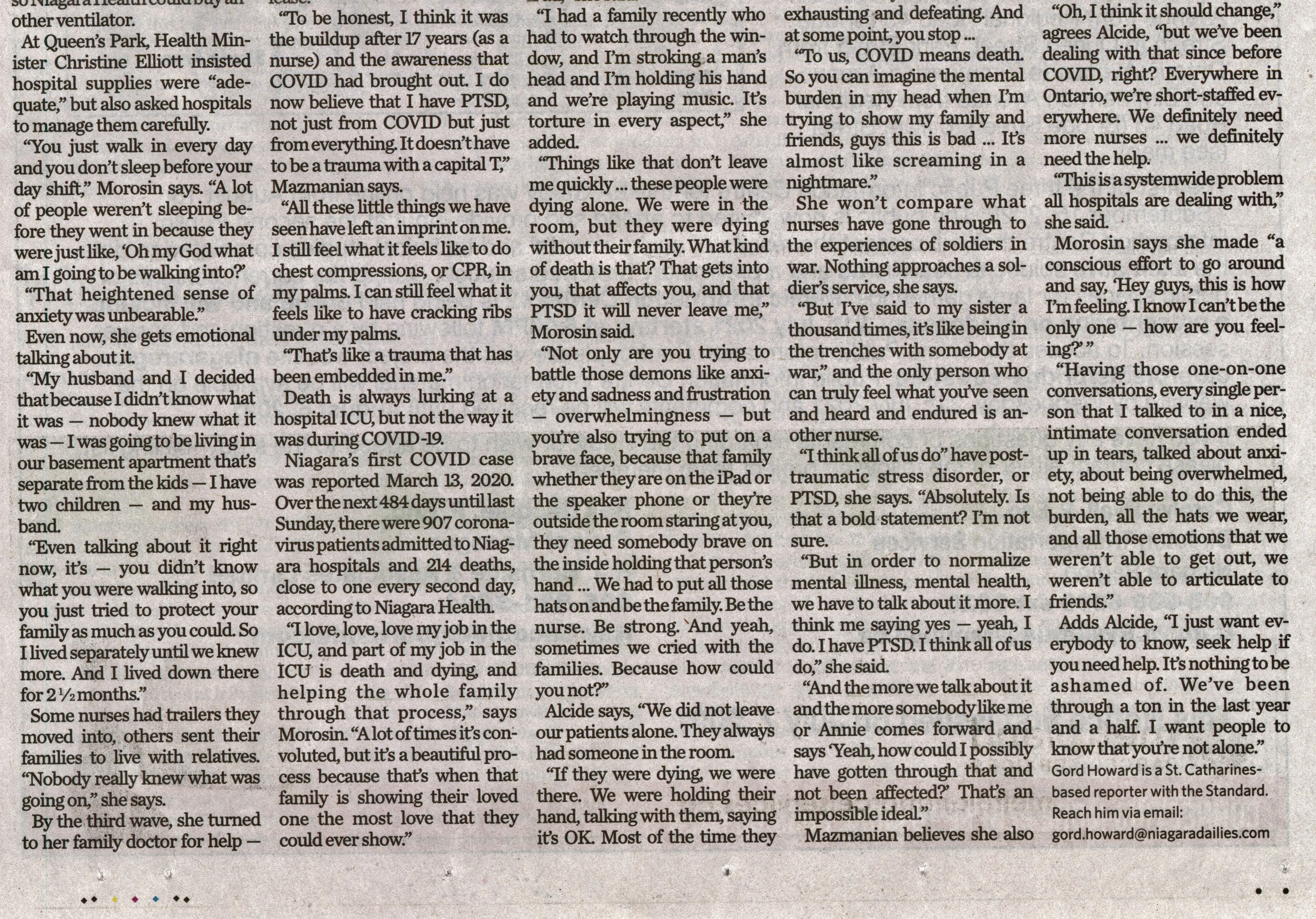 - Niagara ICU nurses share traumatic COVID-19 experience : 'If they were dying we were there. We were holding their hand...'